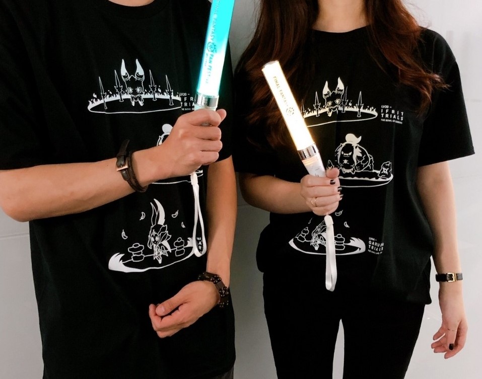 (착용 사이즈 : 남성 스탭 XL 사이즈, 여성 스탭 L 사이즈)케이코&수잔의 콘서트와 더프라이멀즈 밴드 공연 때에는 이렇게 응원봉을 들고함께 모인 빛의 전사들과 응원을 한다면 너무 신날 것 같습니다!저도 하루빨리 행사장에서 모험가분들을 뵙고 싶은 마음에 벌써부터 설레어 오네요. >_<2019 파이널판타지14 팬페스티벌 서울 응원봉, 응원 타올