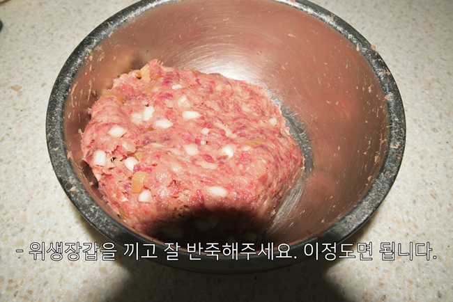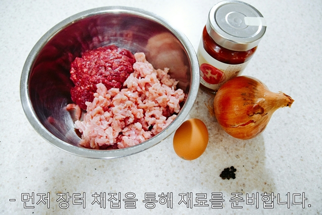 뒤쥐고기(는 없는 관계로 쇠고기와 돼지고기를 1:1 비율로 준비)
