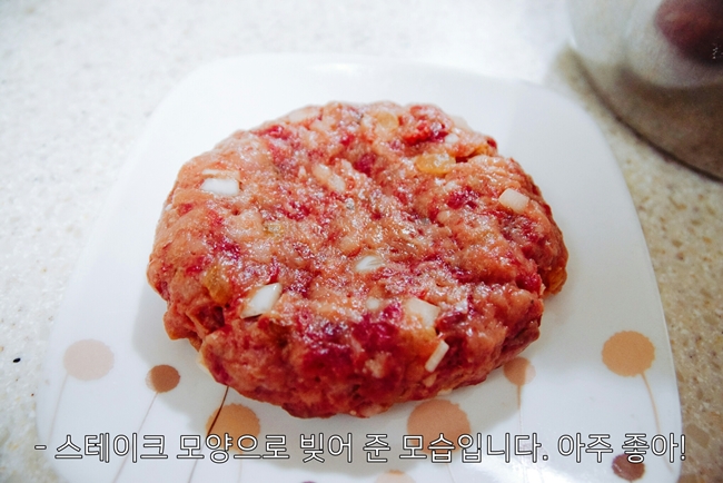 그리고 쇠고기만으로 햄버그 스테이크를 만들 바에는 전 그냥 통으로 구워먹는 쪽을 택하겠습니다.