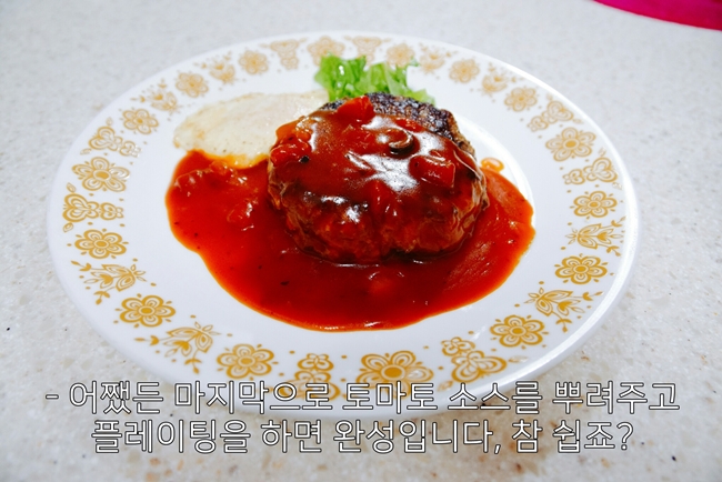- 맛있긴 합니다만 재료비와 인건비를 고려하면 레토르트 함박 스테이크를 사먹는 편이 훨씬 낫다는 결론이 나왔습니다.