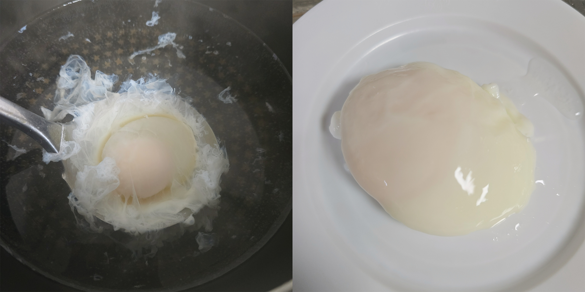 물에 식초를 넣고 끓이다가 회오리를 만들어서 계란을 넣으라고 하던데...