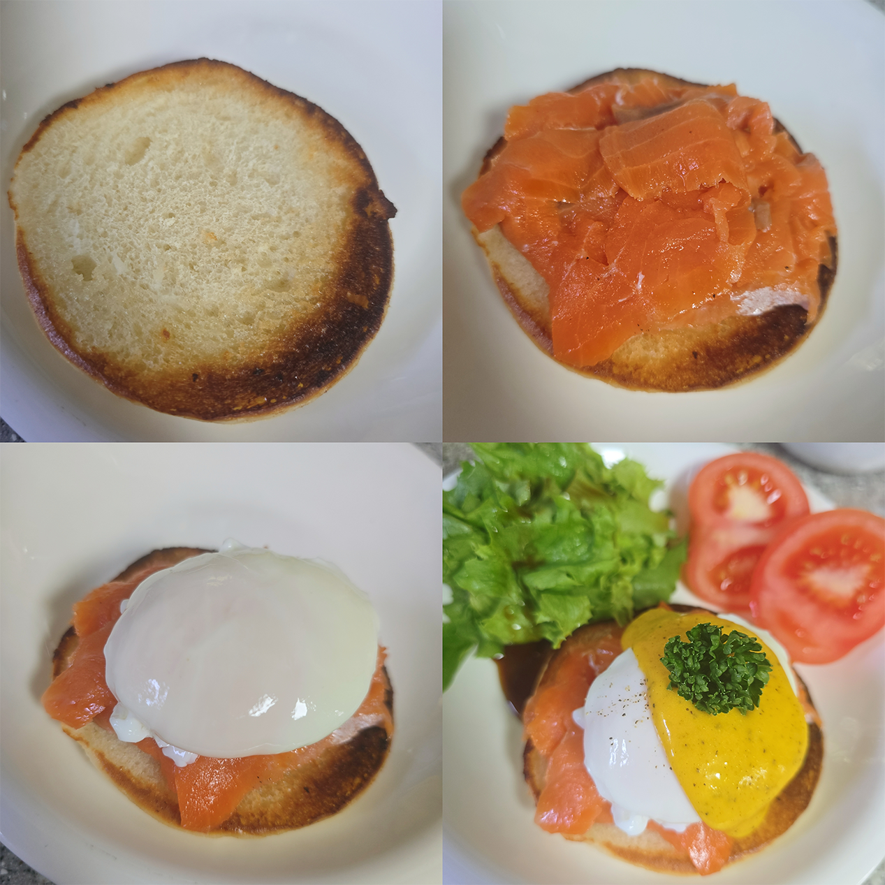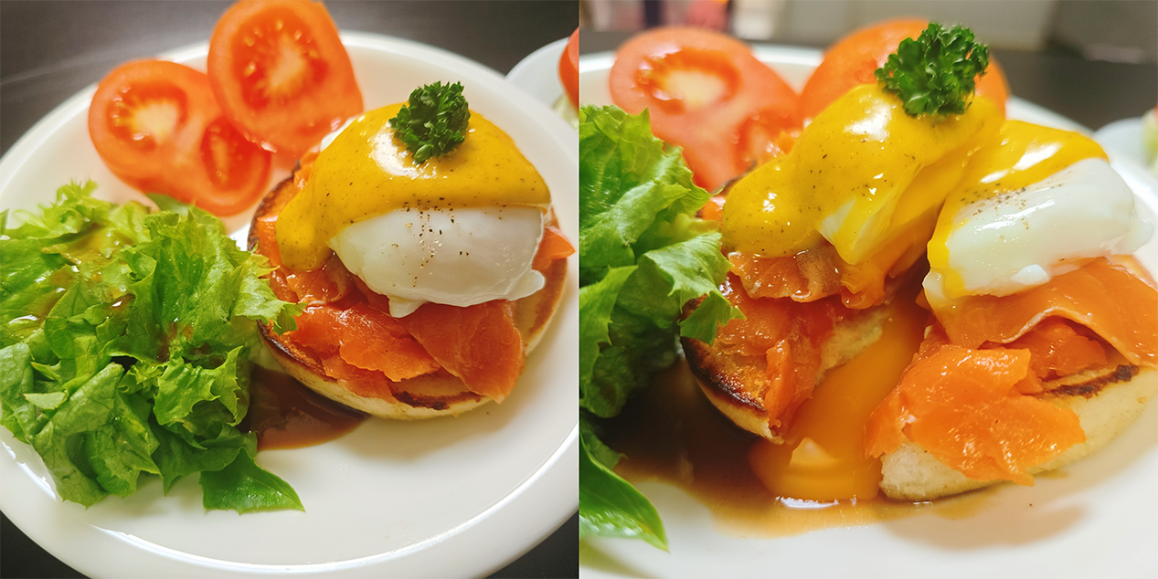 훈제 연어의 은은한 향과 맛, 부드러운 계란 흰자와 녹진한 노른자, 담백한 잉글리시 머핀의 조화가 좋았어요!