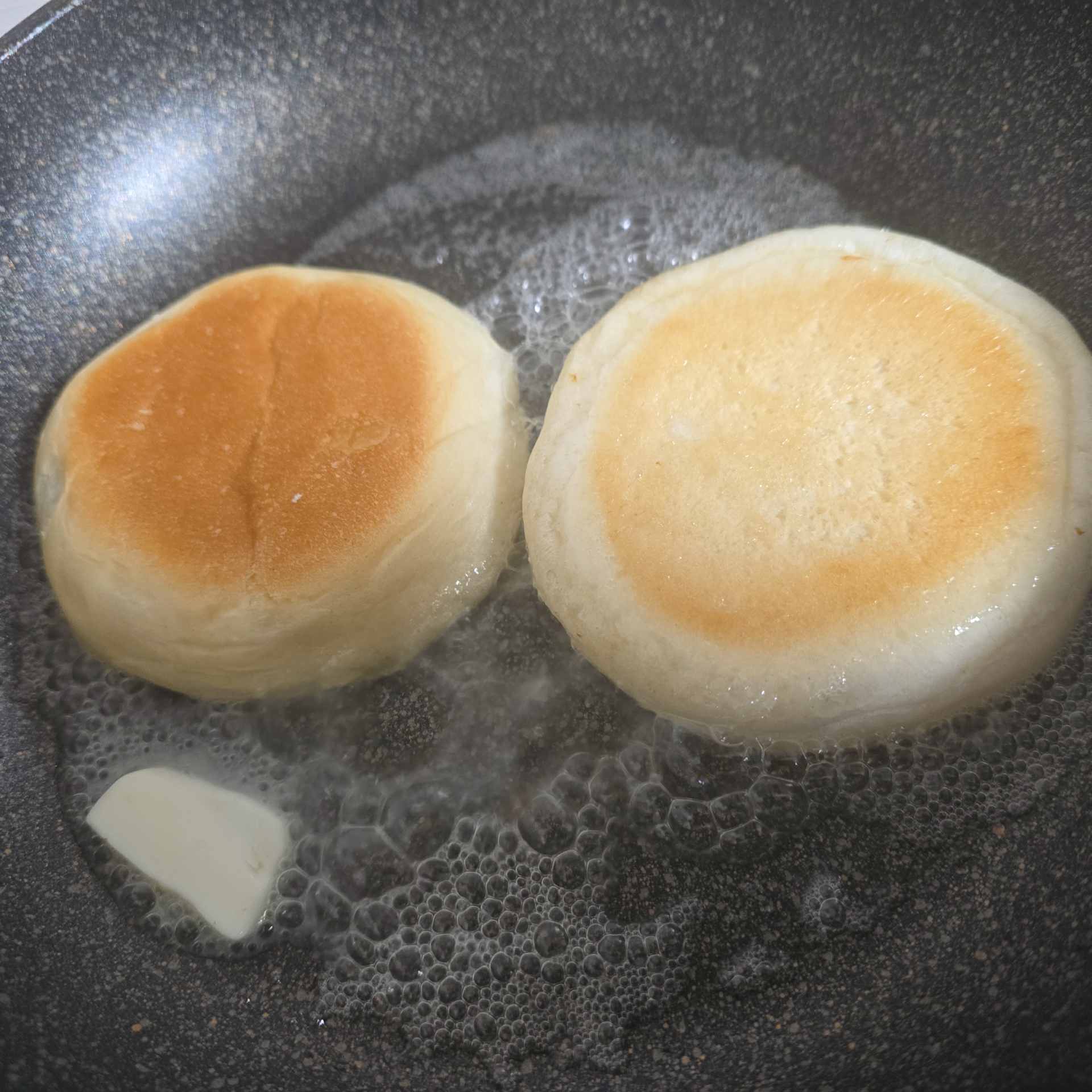 다음은 이슈가르드 머핀을 반으로 갈라, 버터에다 구워줬습니다.