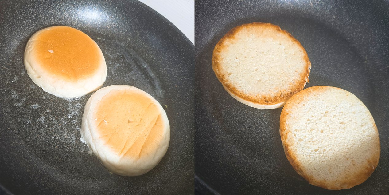 먼저, 이슈가르드 머핀을 반으로 갈라 버터에 구워줍니다.