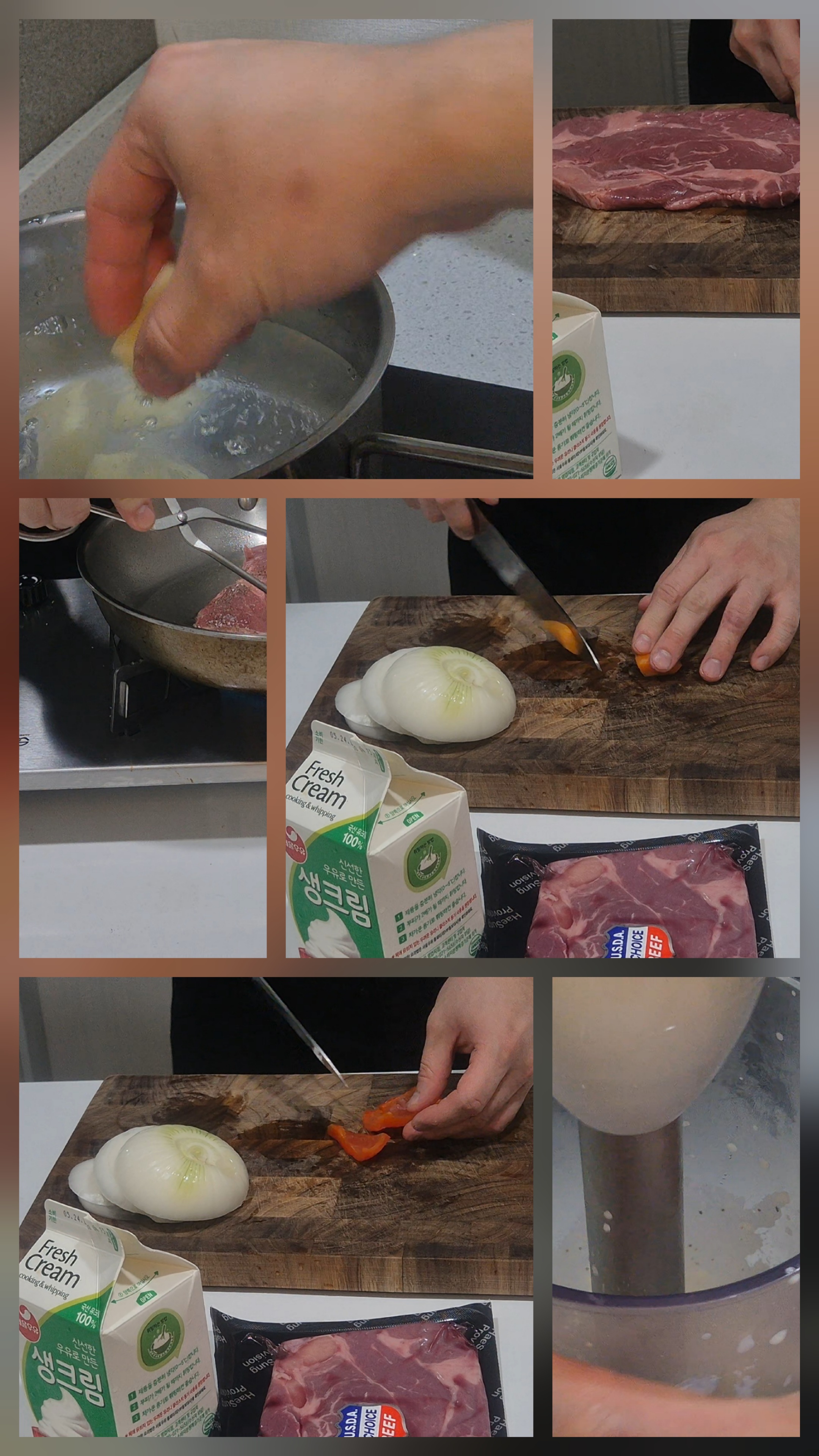 여기서 저는 감자 퓨레를 만들어 부드어운 맛을 더 추가해주었습니다.
