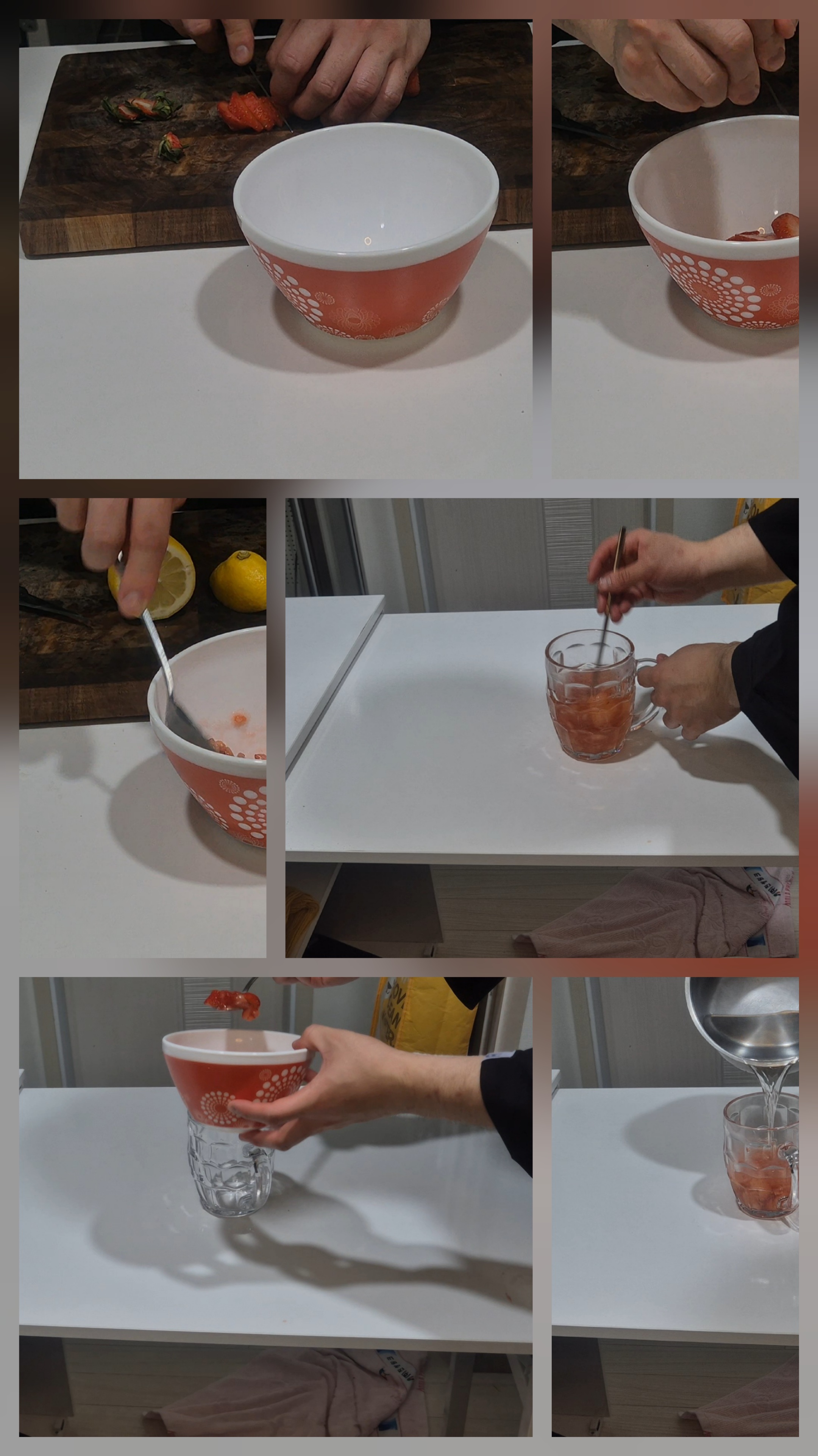 픽시딸기차 따리 송송 썰어서 레몬즙 설탕에 절여 줘요!!