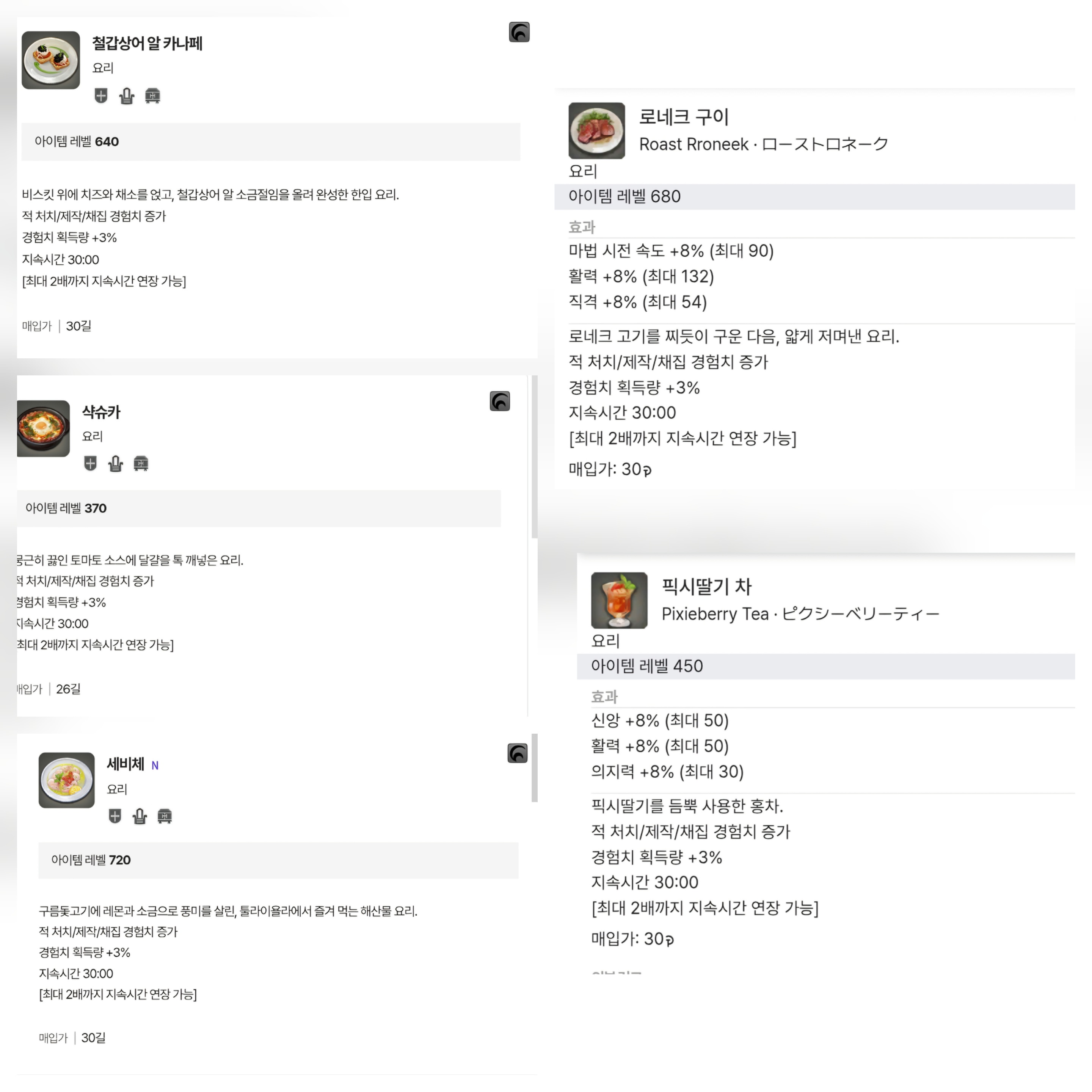 차라리 에오르제아 레시피북 번역본을 달라!!!
