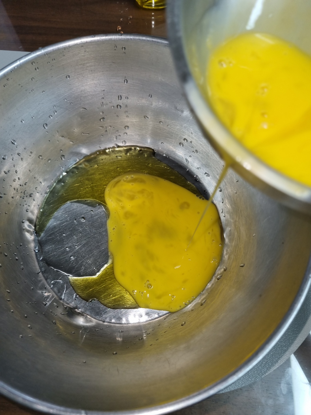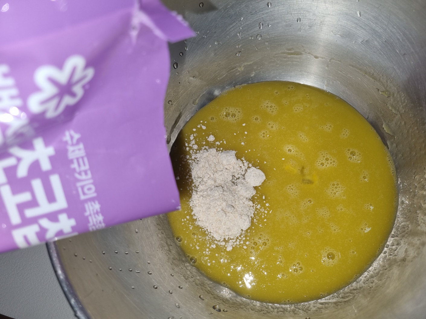 1. 쿠키 믹스에 동봉된 올리고물엿과 올리브유(버터 대체) 70g, 계란 1/2개를 그릇에 넣고 잘 저어줍니다.