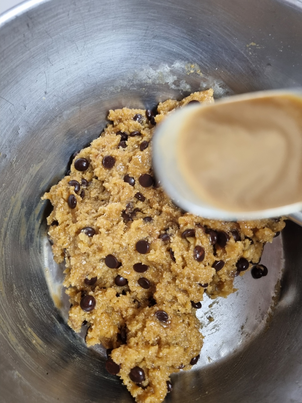 4. 반죽의 농도를 살펴가며 커피를 추가해줍니다.