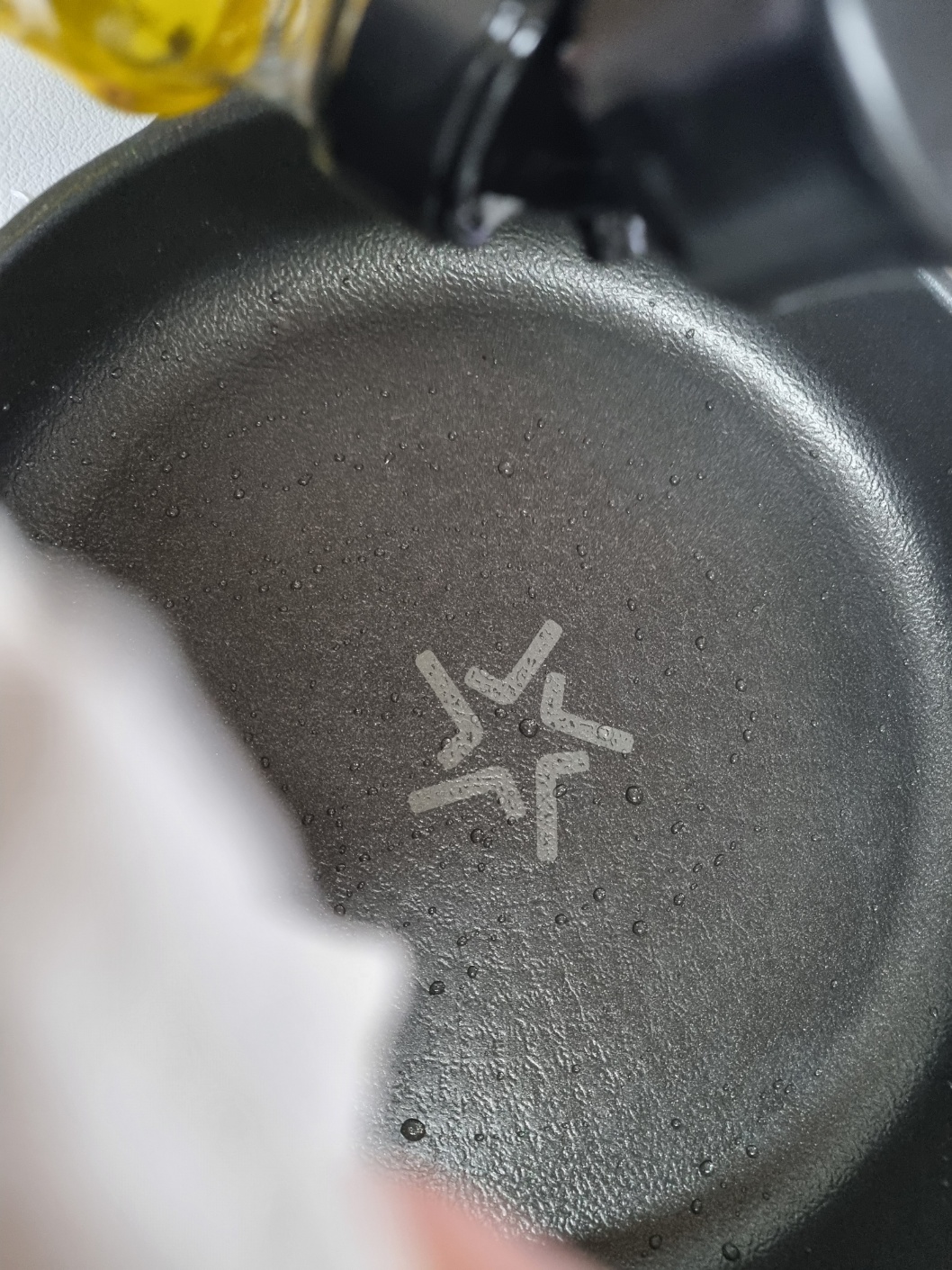 6. 굽기위해 프라이팬에 기름을 코팅해줍니다. 노오븐 노에어프라이.. ㅇ<-<