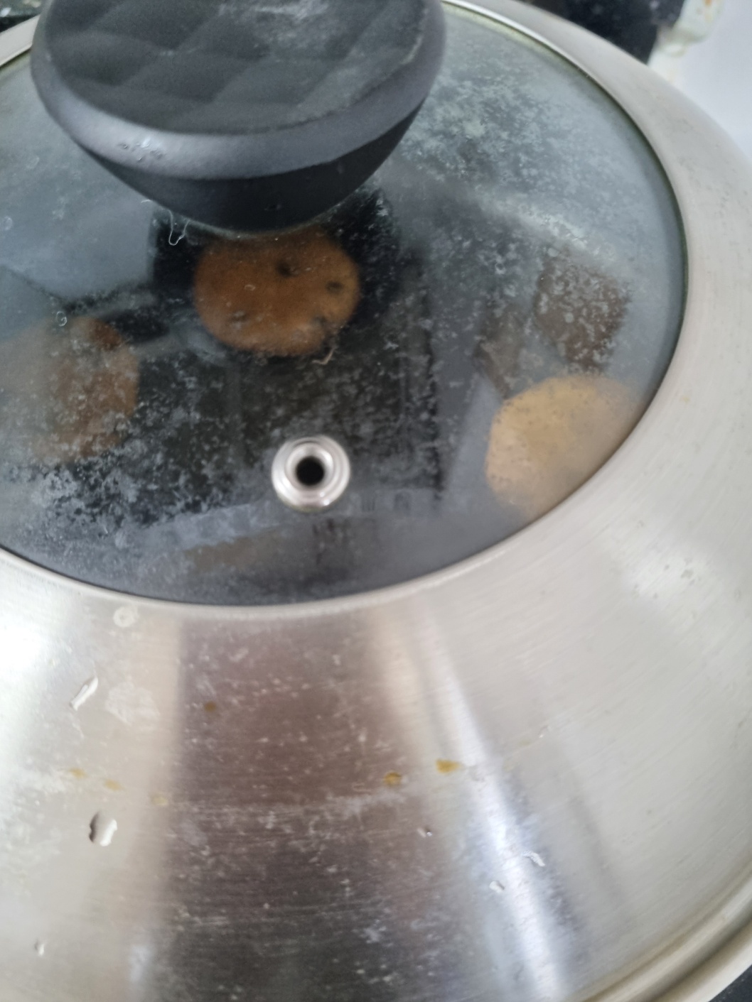 15. 물을 500ml 정도 넣어줍니다. 다 증발하니 걱정하지마세요. 단단한 식감을 좋아하시면 300ml정도 넣으시고 증발할 때마다 물을 추가해주세요.