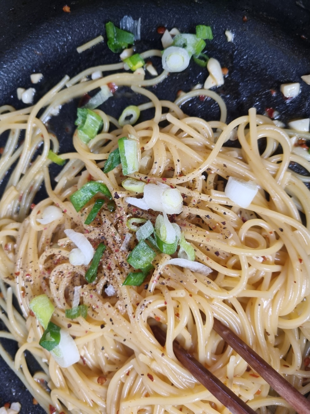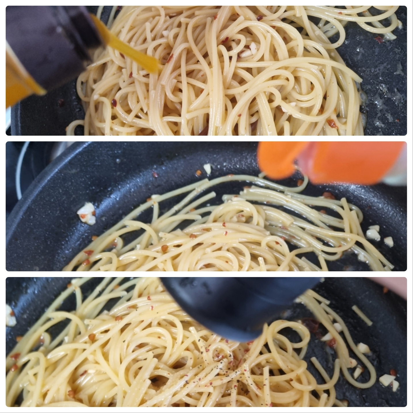 ☞ 알리오 올리오 페페론치노 - 스파게티, 마늘, 올리브유, 페페론치노, 후추, 소금, 액젓, 치킨스톡, 파