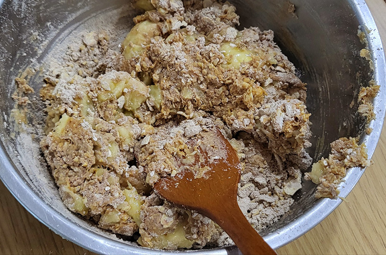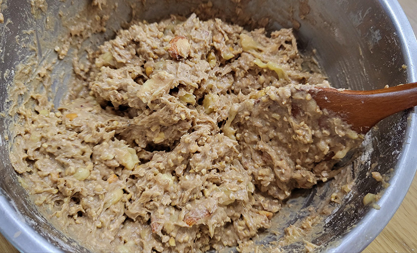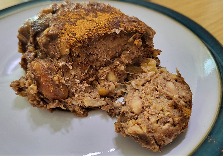 식감은 크런치하거나 바삭하진 않고 무스같은 느낌이라 나름 부드럽다고 생각합니다. 아무래도 두유를 많이 넣어서 그런지 완벽하게 굳지는 않아 그런 것 같습니다. 예상보다는 부드럽다고는 해도 스틸컷 귀리가 들어갔으니 전체적으로 거칠거칠한 식감이지만요.