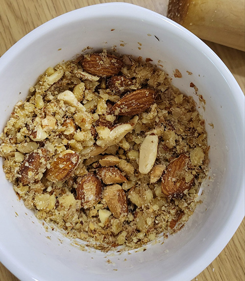 어떻게든 해냈습니다. 아몬드가 좀 덜 부서진 거 같지만 이대로도 괜찮다고 생각합니다.