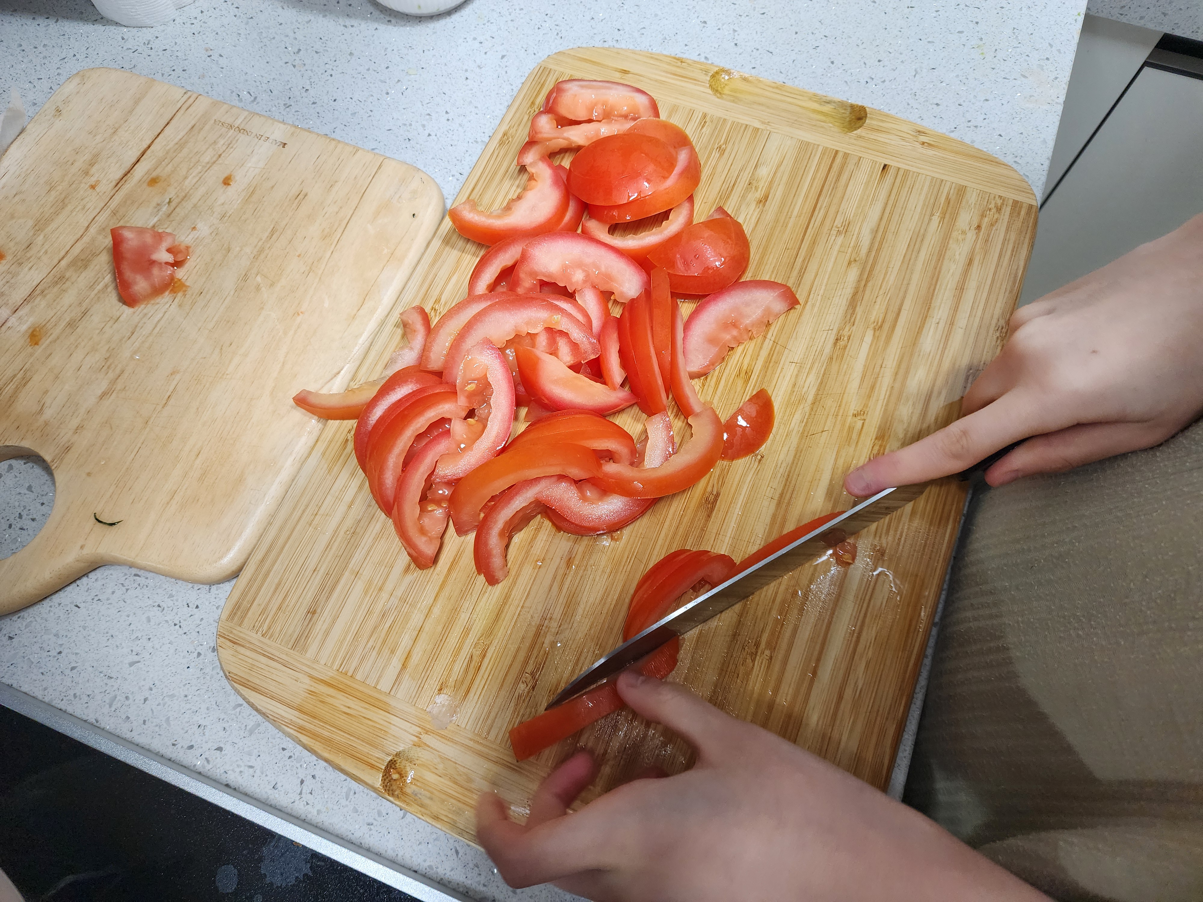 소스 만들고 남은 양파와 토마토는 자연스럽게 토핑인 척 합니다.