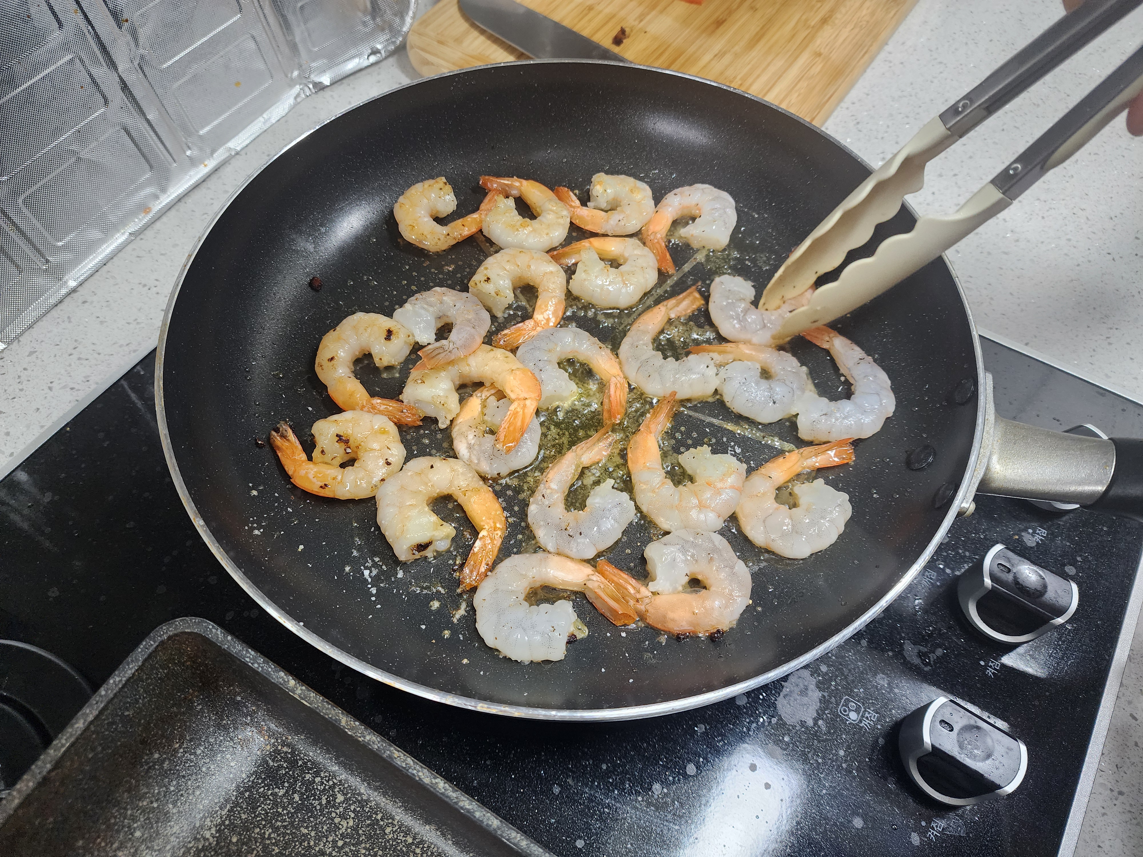 그 다음으로 안에 넣을 새우를 구워줍니다