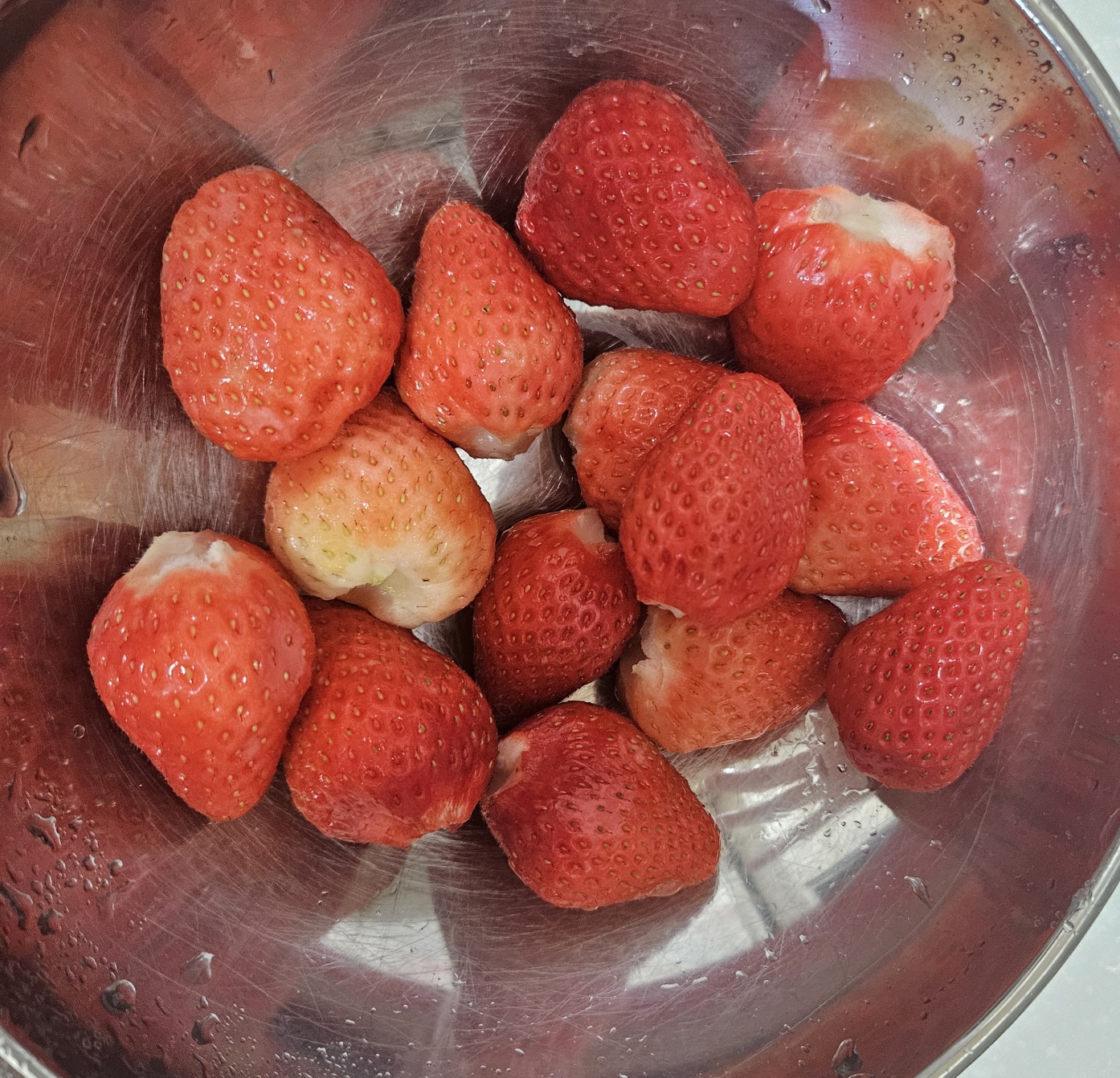 일단 딸기를 씻고 꼭지를 제거합니다.