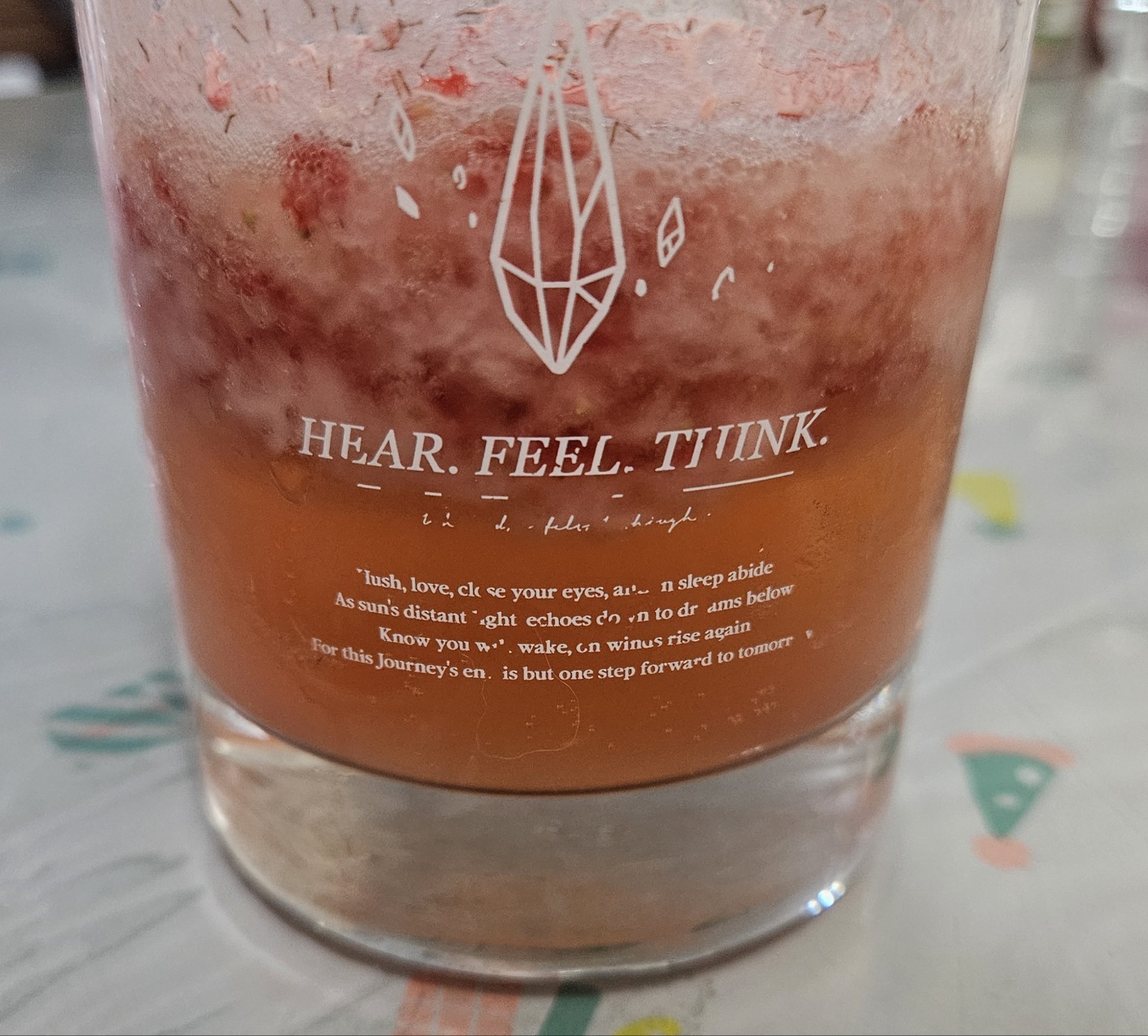 예쁜 컵에 으깬 딸기를 담고 탄산수나 사이다를 넣으면 완성~!