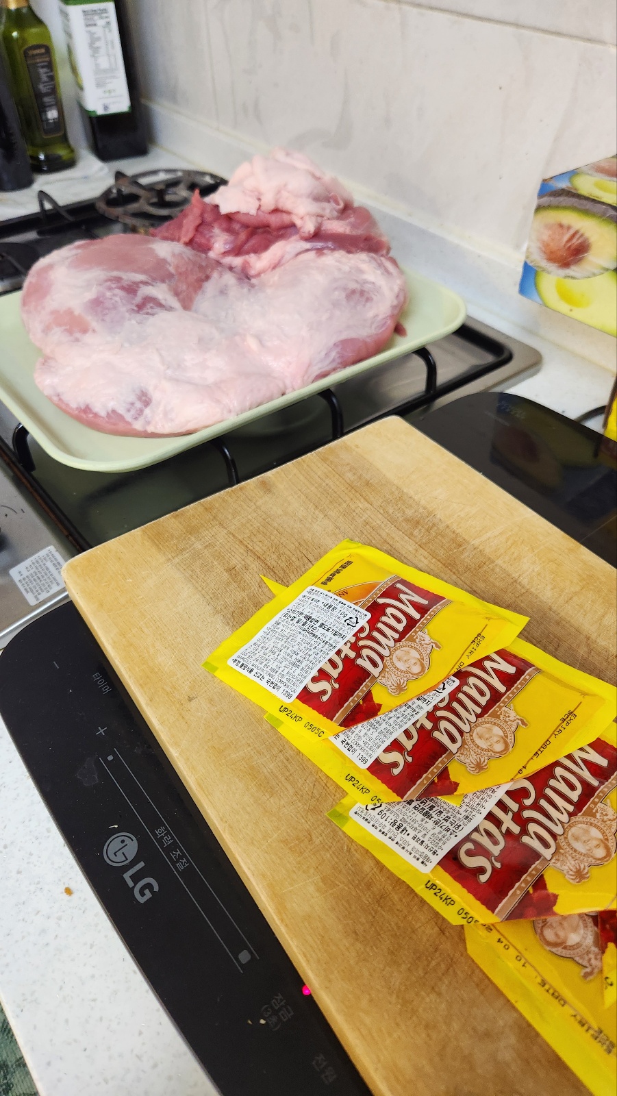 양념이 준비가 되었으니 고기를 꺼내줍니다.