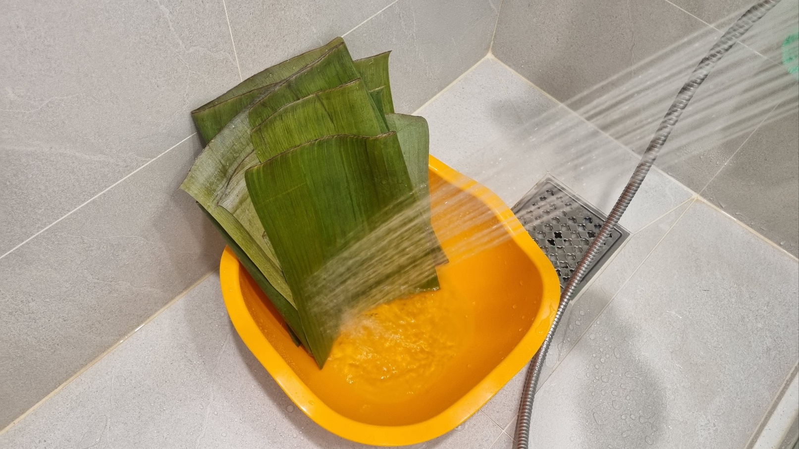 위생이슈가 발생하지 않도록 바나나잎을 잘 씻어줍니다.