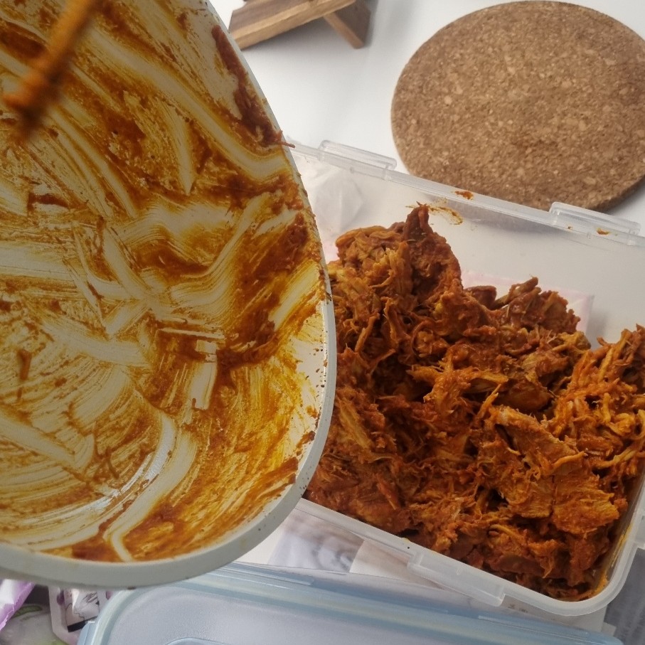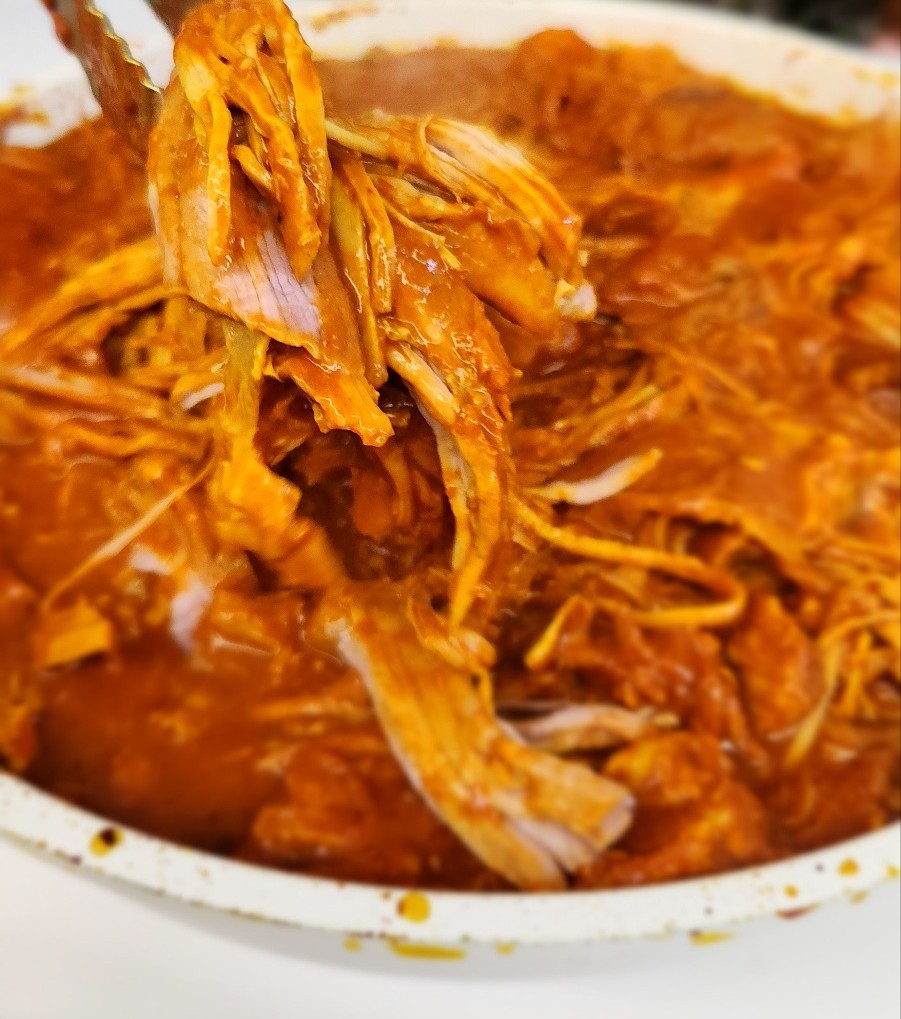 전날 재워둠 + 오븐에 장시간 조리로 인해 손으로도 그냥 으깨질 만큼 매우 부드러워진 상태입니다.