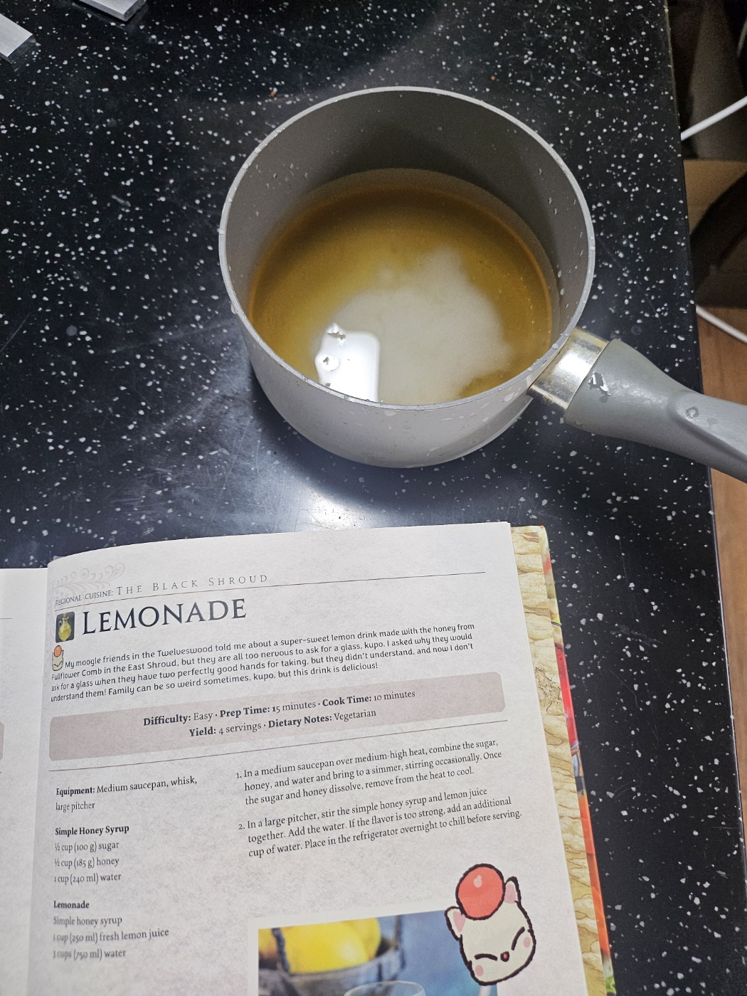 레몬에이드는 공식 요리책에 나온 레시피를 따라서 만들어줍니다