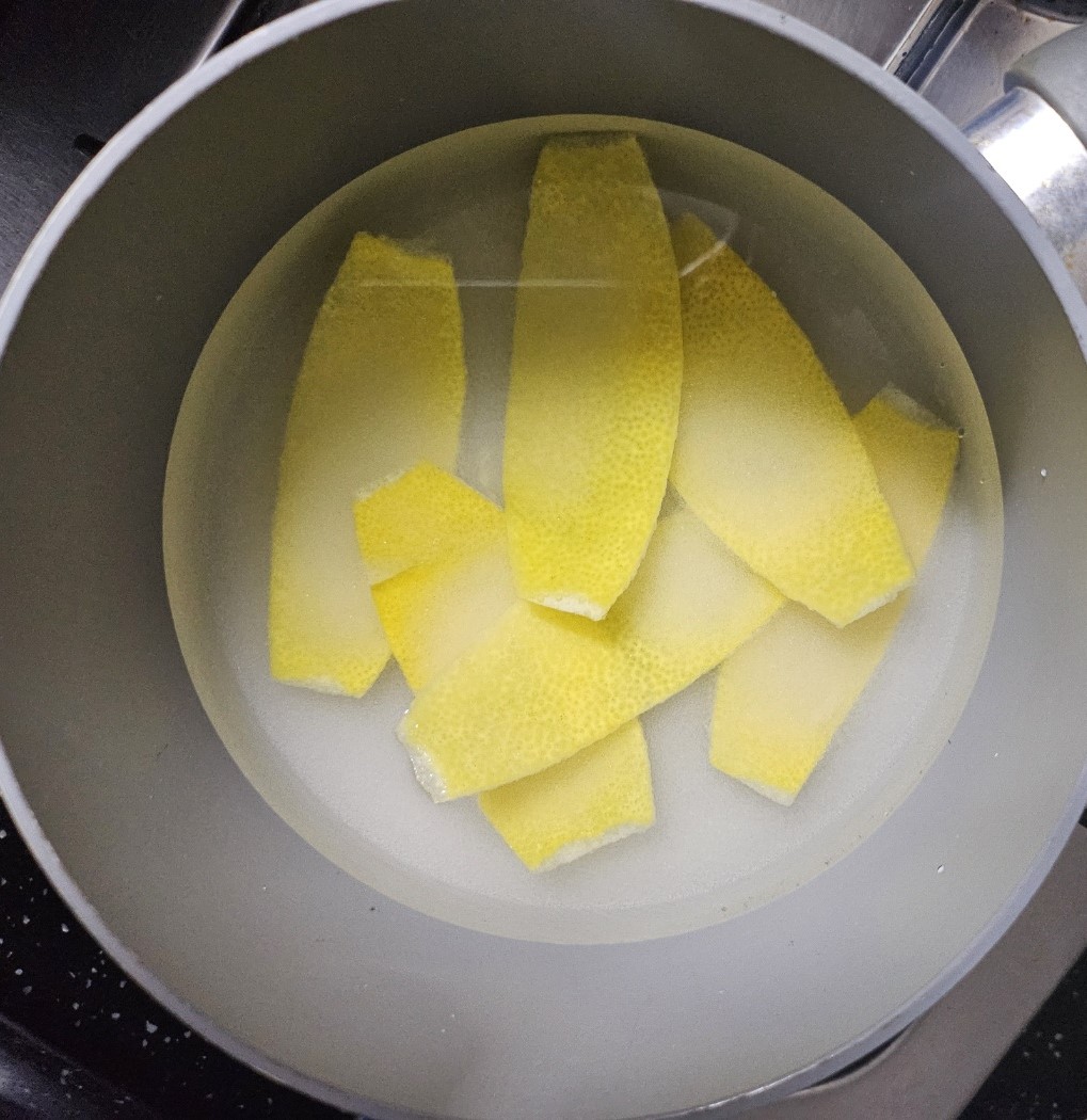 10분간 끓인 뒤 레몬 제스트는 꺼내줍니다