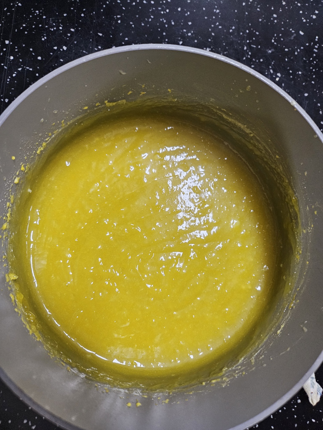 잘 섞인 레몬커드는 그대로 식혀주는데, 이때 어느정도 식힌 레몬커드를 채에 걸러주면 좋습니다(생략가능)
