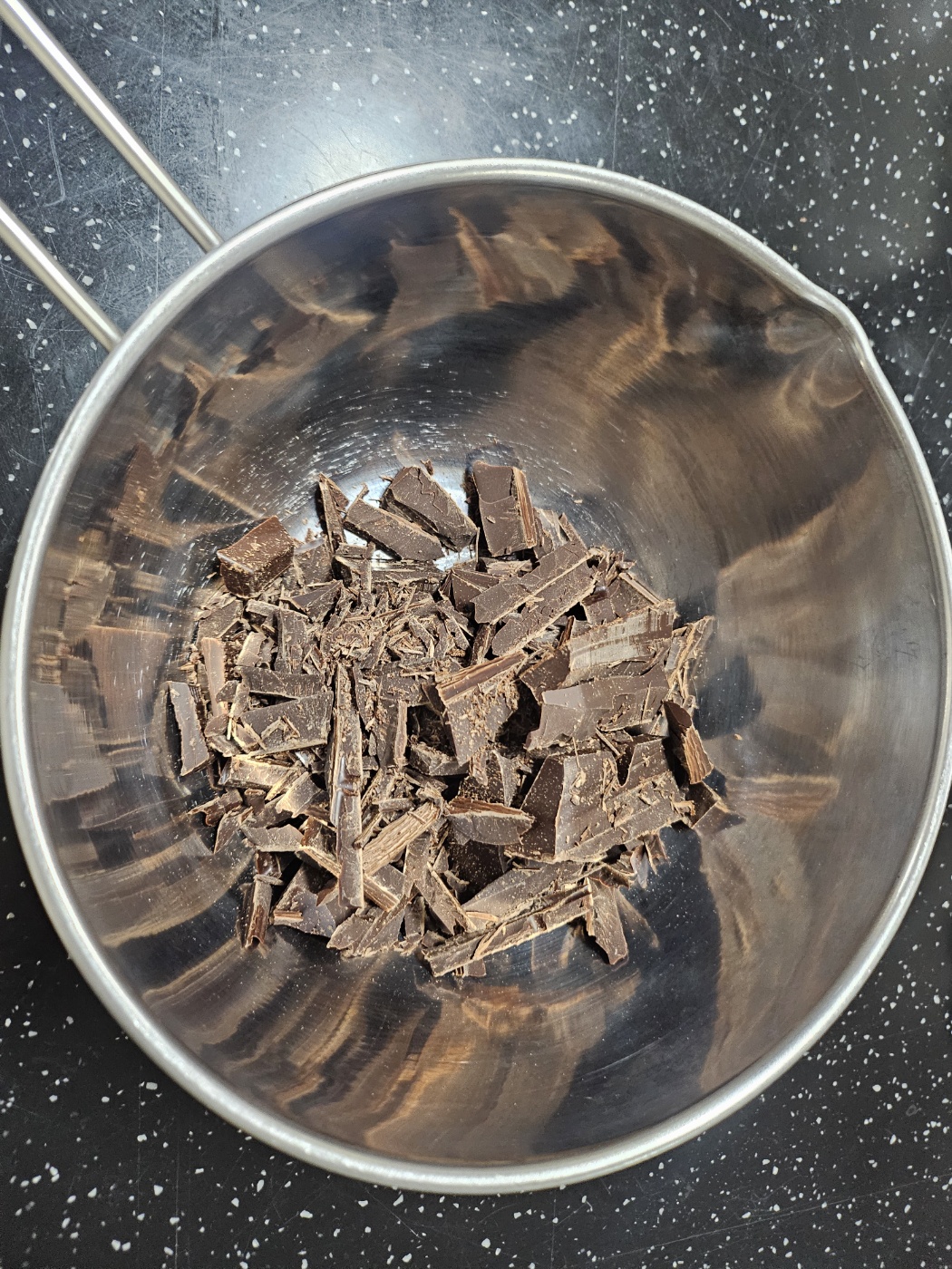 초콜릿 200g을 중탕해서 녹여주고 설탕 250g과 물 160ml는 냄비에서 끓여 시럽을 만들어줍니다