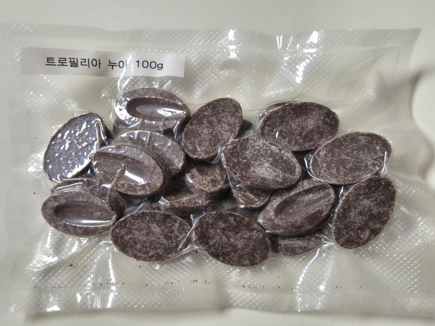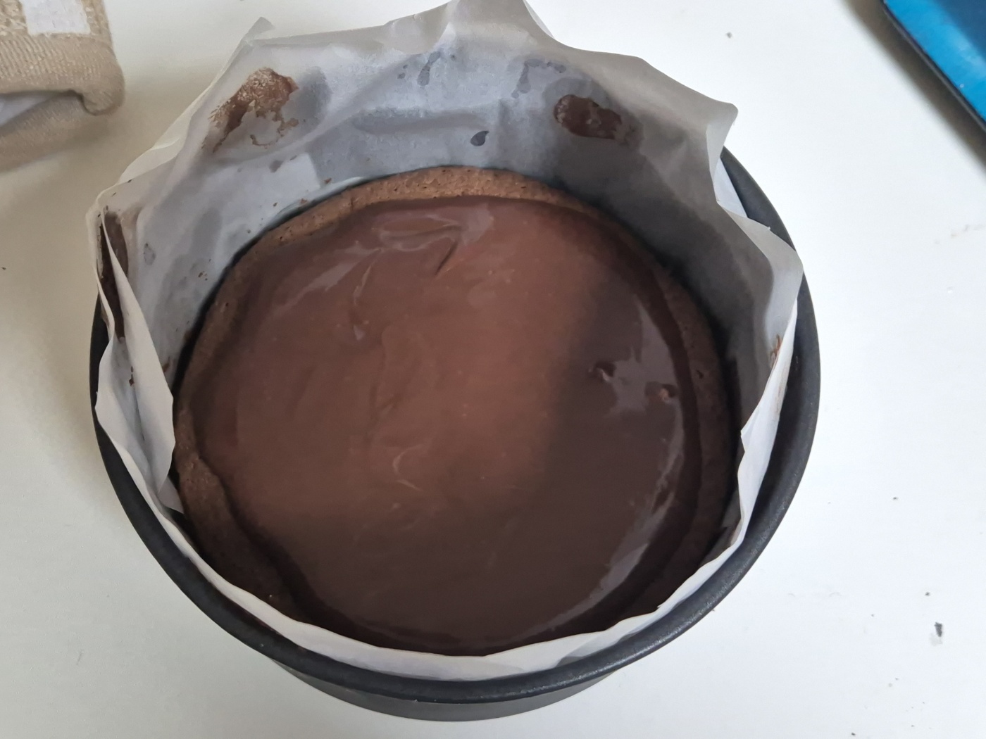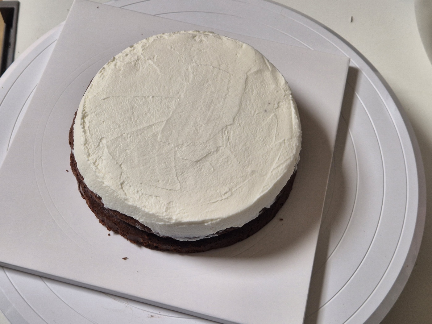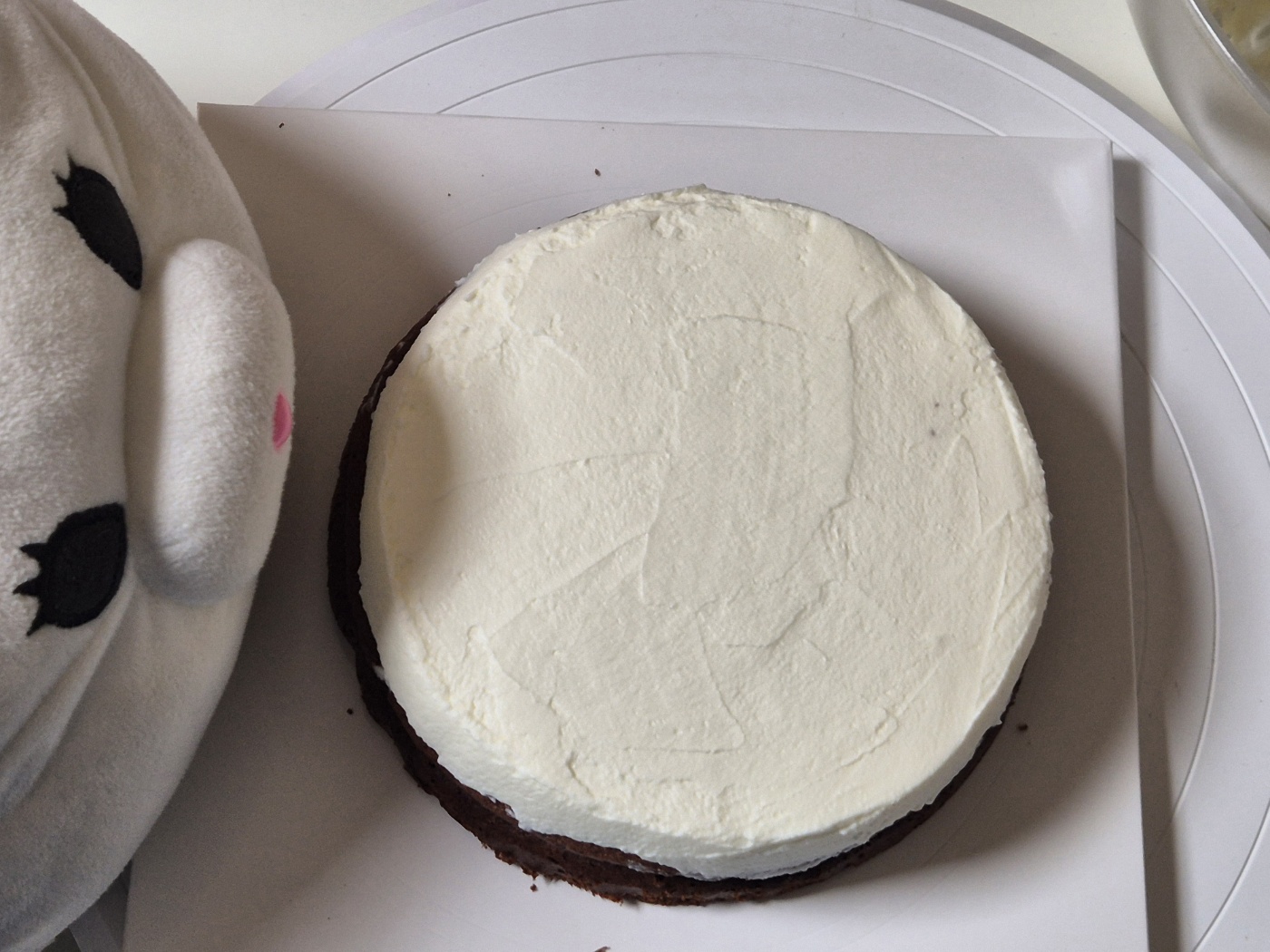 냉장 숙성한 갸또 위에 가나슈를 얹고 다시 냉장고