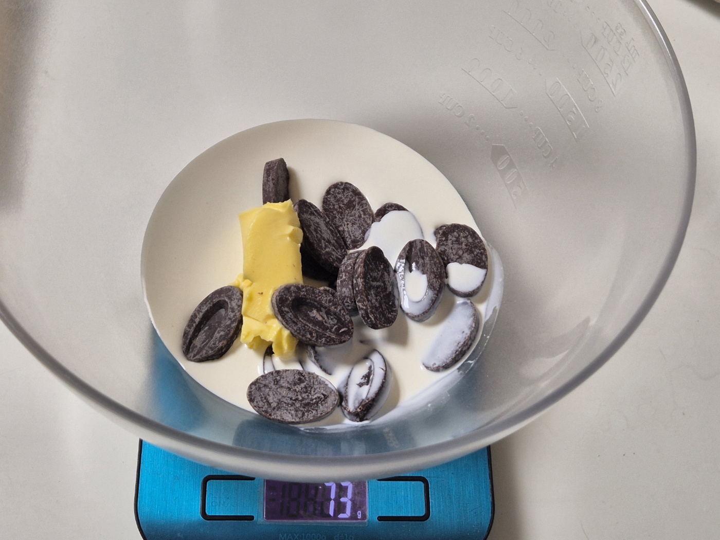 숙성될 동안 위에 얹을 가나슈 만들어요~