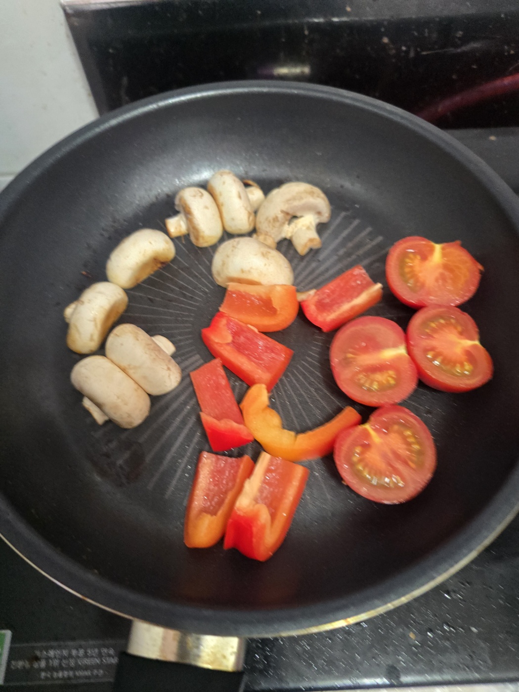 남은 재료를 냅다 구우며 소금, 후추로 살짝 간을 해줍니다.