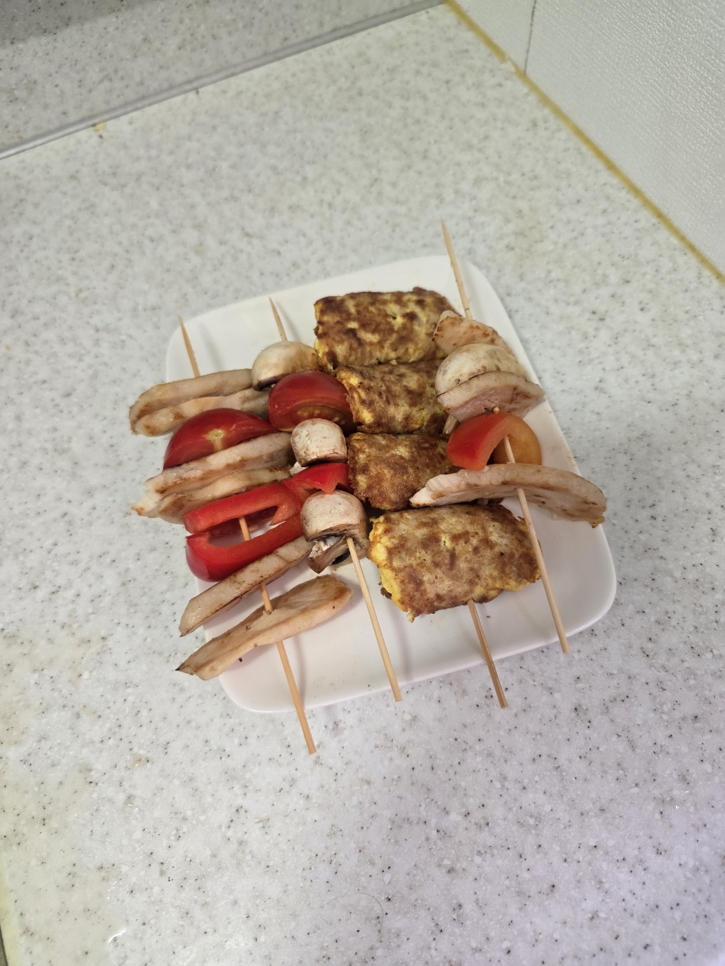 다 구워진 재료들을 꼬지에 잘 꽂으면 완성!