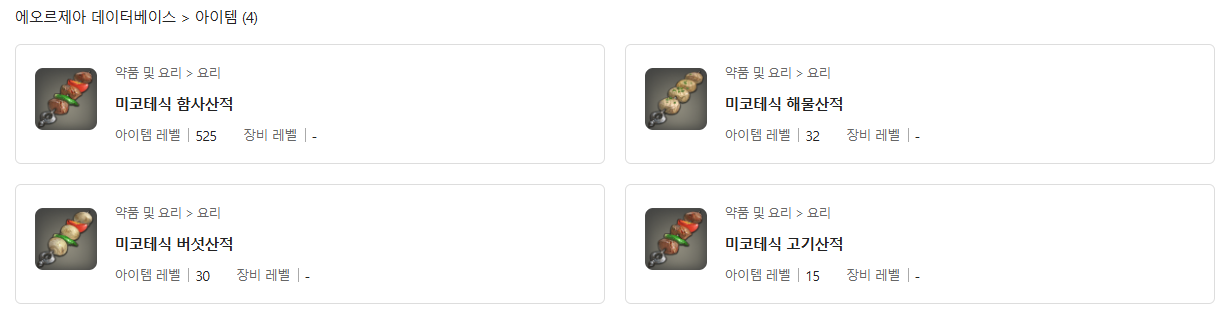미코테식 산적은 4종류나 됩니다. 하지만 들어가는건 비슷비슷하니 일단 고