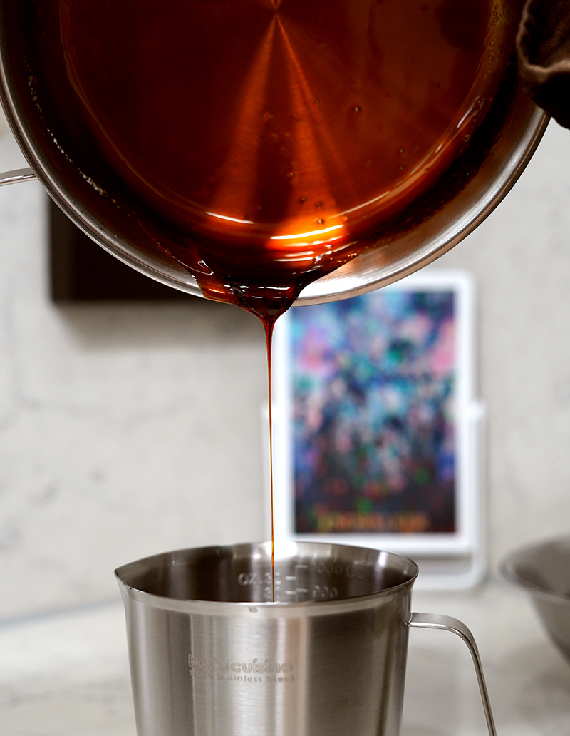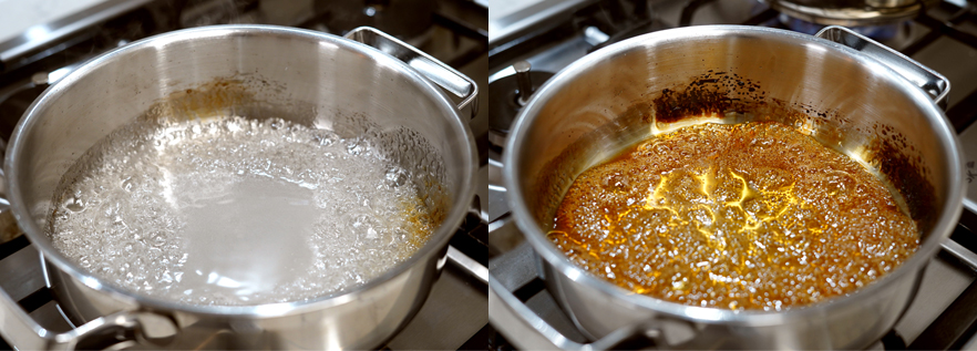 캬라멜 색을 내주기위해 설탕에 열을 가하여 녹여줍니다!