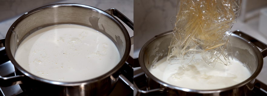 그리고 아까 불려두었던 판 젤라틴을 넣어서 잘 저어주세요.