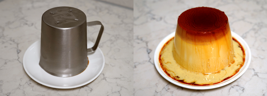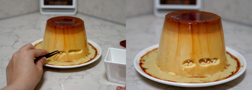 잘 굳은 푸딩을 뒤집어서 살살 꺼내어 줍니다.