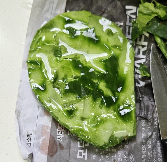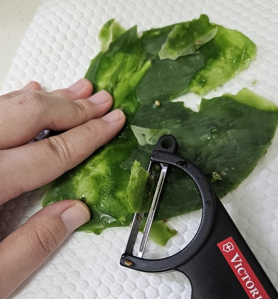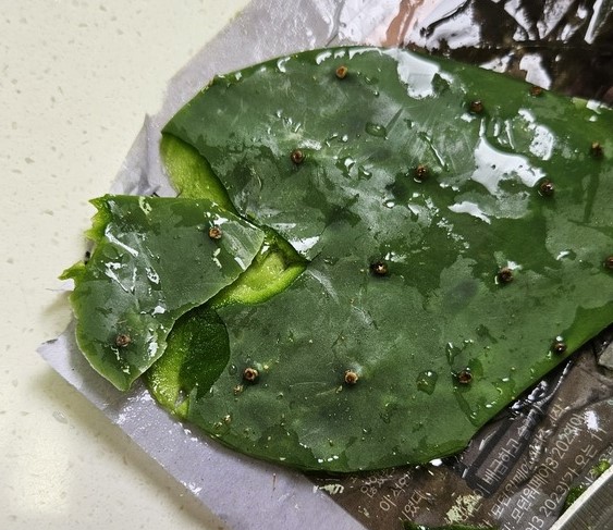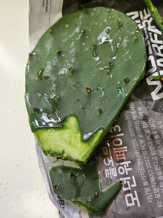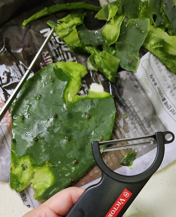 손가락에 가시가 찔리면서 열심히 벗겼는데 돌아오는 건 끈적끈적한 선인장입니다.