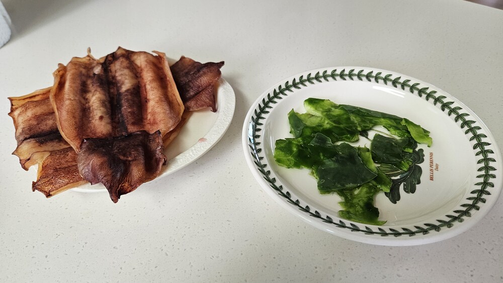 마침 오징어도 다 구워졌으니, 두 요리를 한 데 모아봅시다.