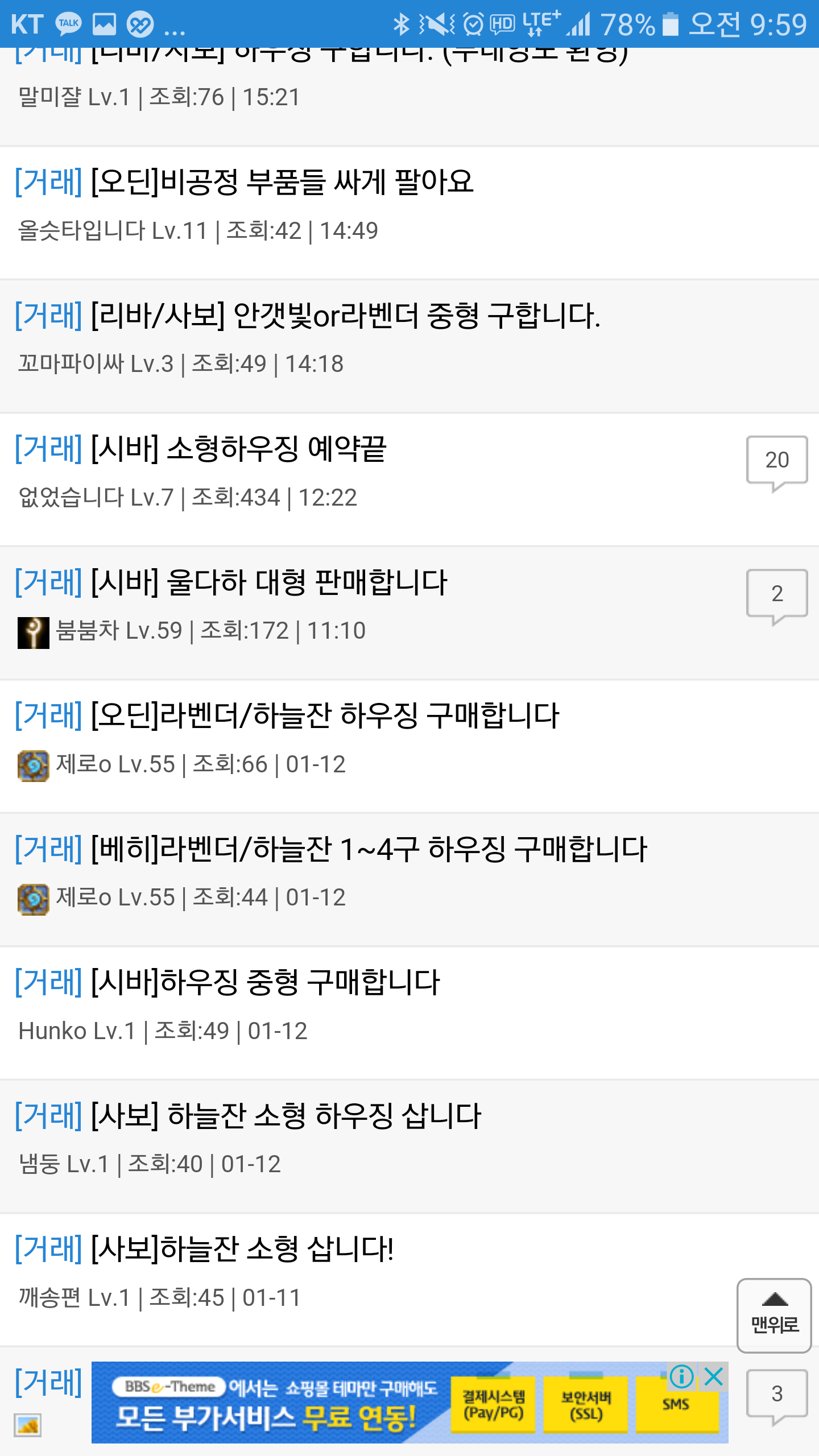 직장인이라 겜할 시간도없는데 9시퇴근하고와서 일일돌기도 빠듯한데. ㅜㅜ 하우징 걱정에 잠이 않오네요..그래서 요즘 거래싸이트들을 돌아다니면서 본건...