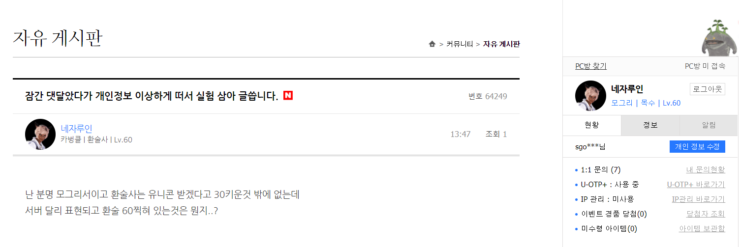 난 분명 모그리서이고 환술사는 유니콘 받겠다고 30키운것 밖에 없는데