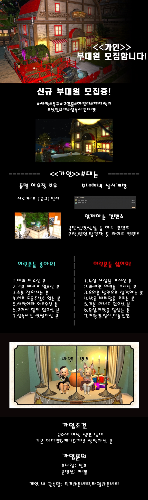 | 10188 | <톤베리>구부 부대원 모집해용. (0) Picture 대장 | 21-01-09 | 10705 | 0 |