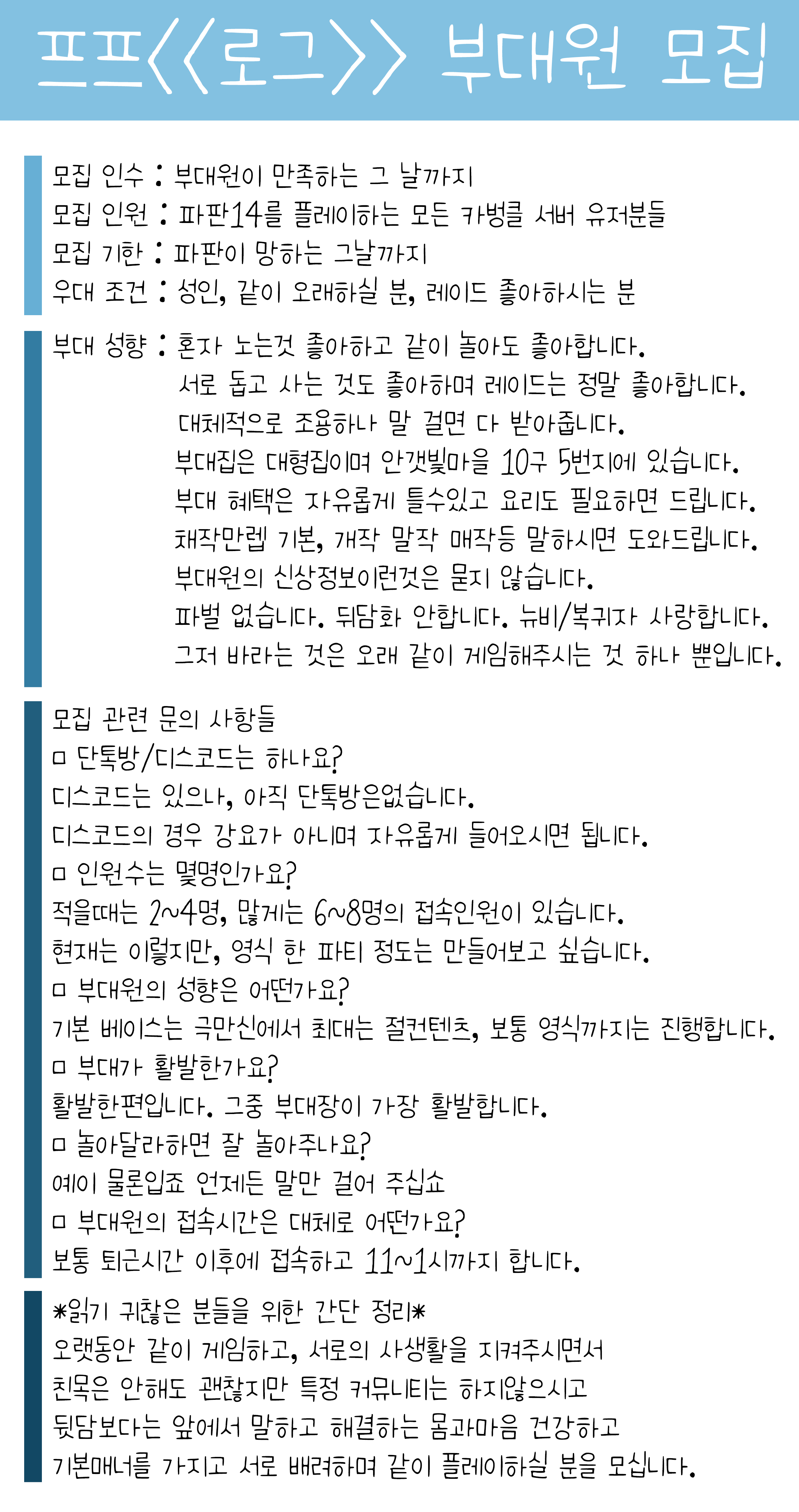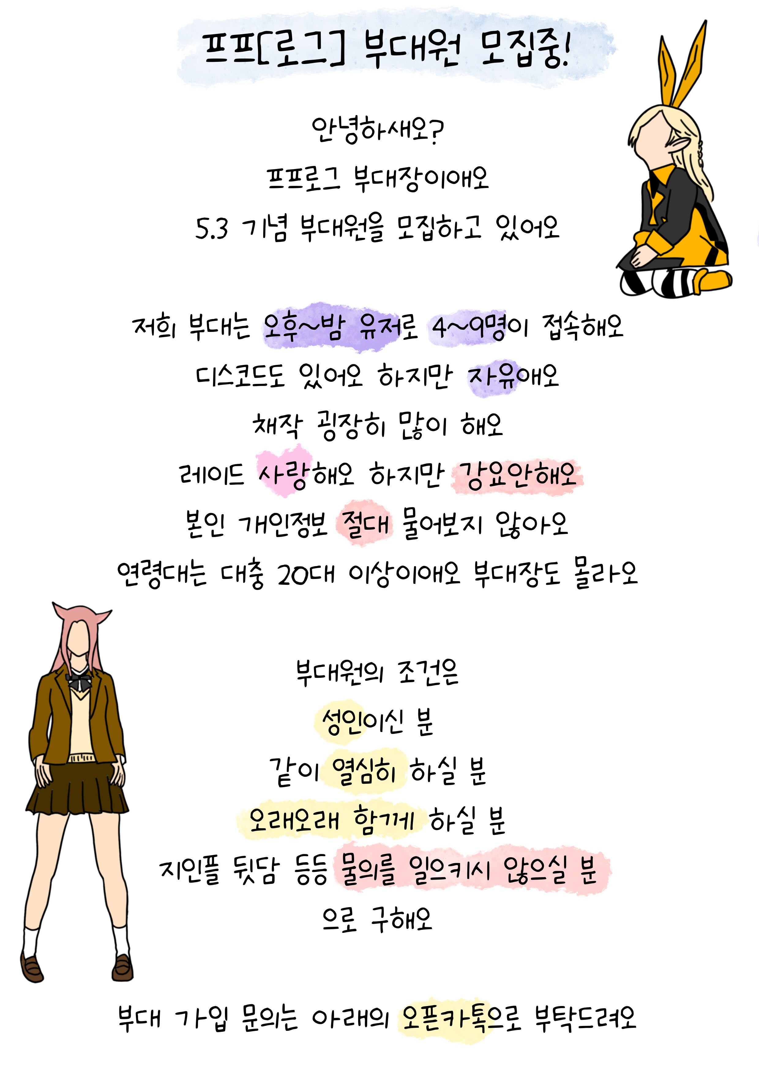 [카벙클]프프 로그에서 부대원을 모집합니다!