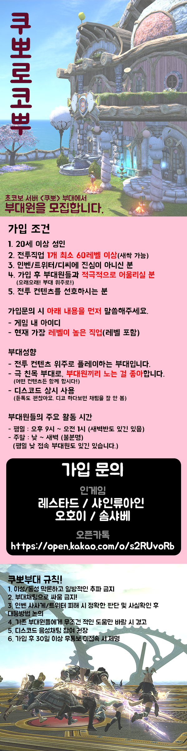 초코보서버 [쿠뽀로코뿌<쿠뽀>] 부대에서 부대원을 모집합니다!