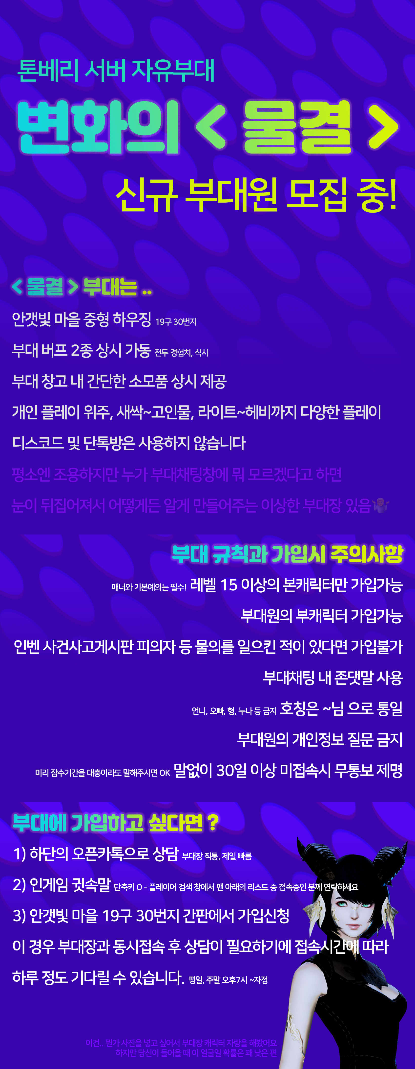 접속중이 아니거나 던전에 있으면 귓말이 닿지 않기 때문에 그때는 꼭 간판 문의/오픈카톡주세요!!