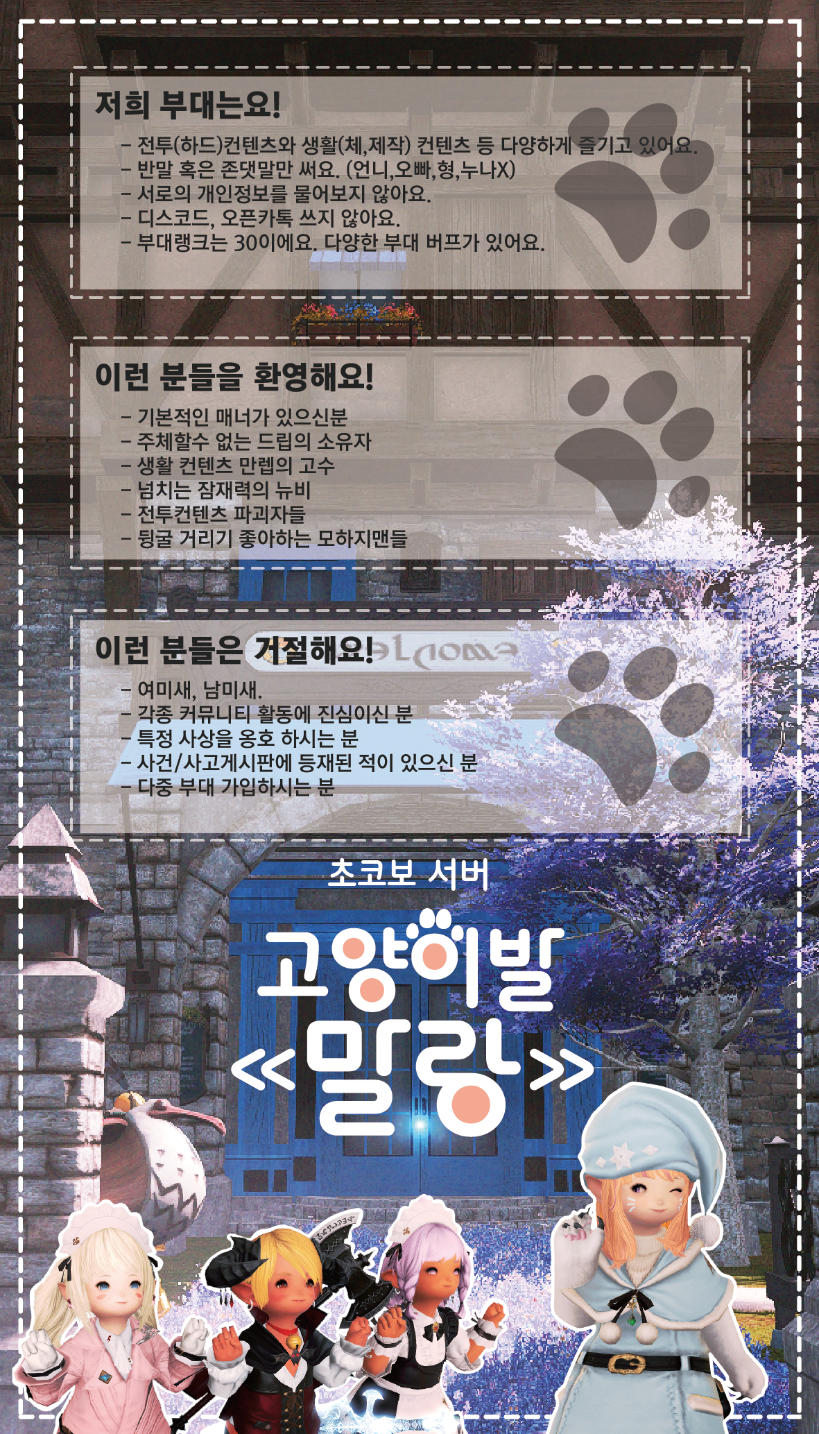 가입 문의는, 서여비/세사/근잠/연어배지느러미/희현 귓속말 주세요!