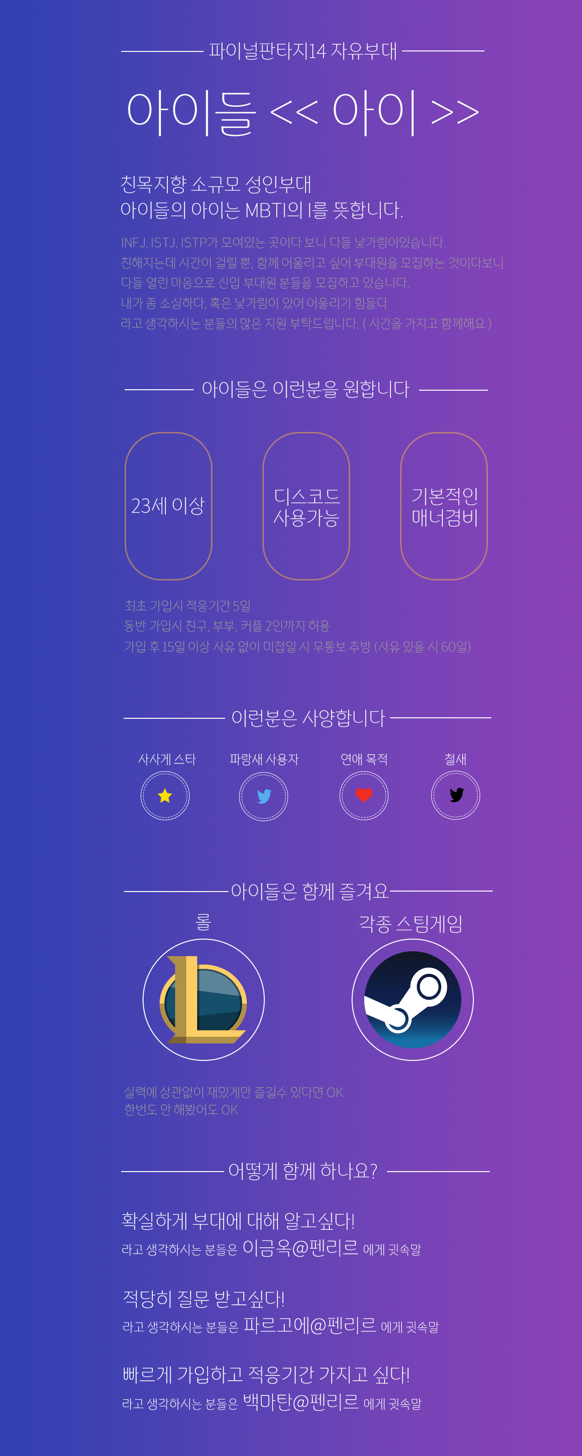 | 16108 | [펜리르] 위풍당당에서 함께 하실 가족을 모집합니다 (0) Picture 세라패런' | 23-07-14 | 8832 | 0 |