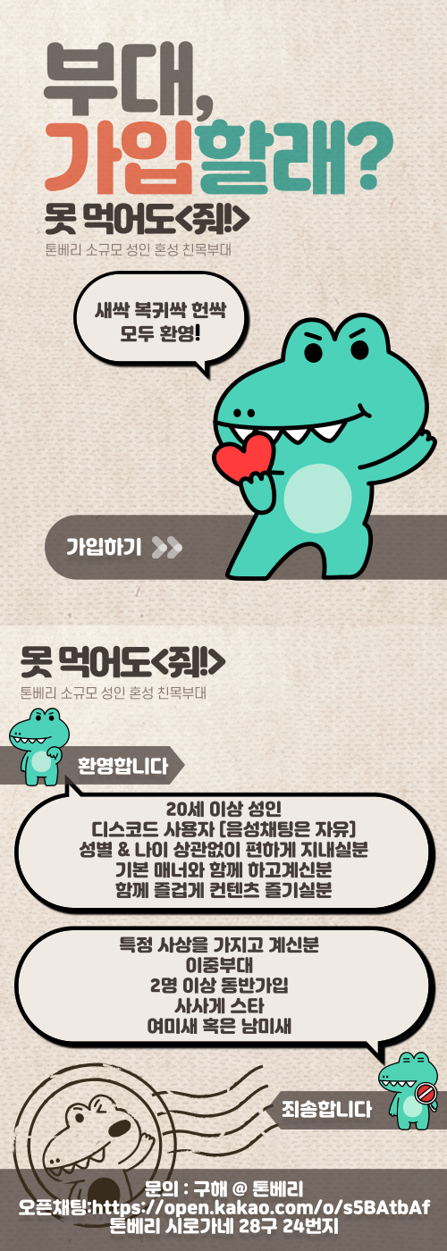 | 20843 | [톤베리] 성인 친목 부대 피카《츄》 부대원 모집합니다! (0) Picture 핀터 | 25-11-22 | 603 | 0 |