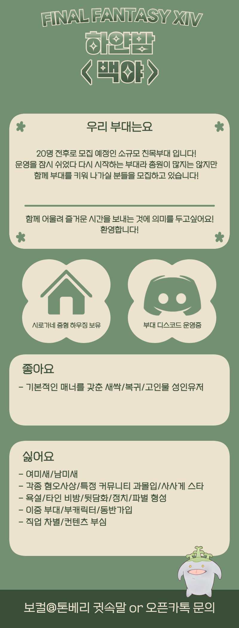 [톤베리] 소규모 친목 하얀밤 <백야> 부대에서 부대원을 모집합니다!