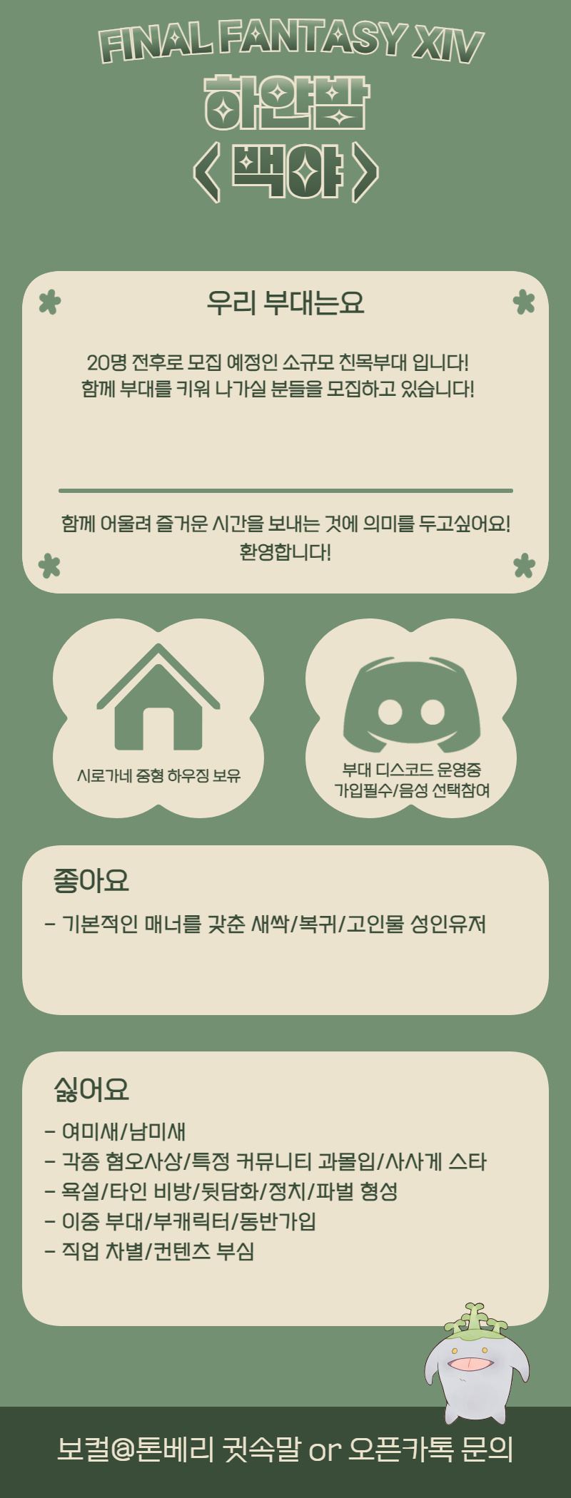 [톤베리] 소규모 친목 하얀밤 <백야> 부대에서 부대원을 모집합니다!